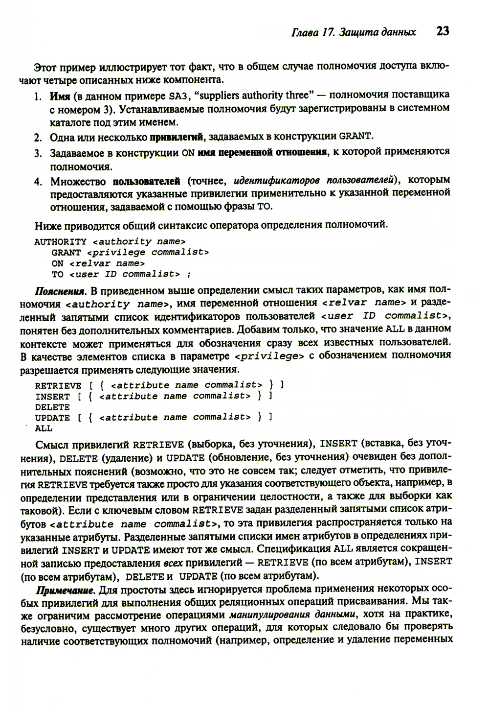 Эта книга представляет собой исчерпывающее введение в область научно-технических знаний, которая в последнее время приобрела исключительно важное значение. Эта книга позволяет получить солидную подготовку по теоретическим и практическим основам технологии баз данных и вместе с тем приобрести определенное представление о том, как эта сфера деятельности будет развиваться в будущем. Настоящее издание дополнено и исправлено с учетом новейших тенденций и достижений в области систем баз данных, но читателю по-прежнему предоставляется возможность достичь полного усвоения и понимания излагаемого материала, а не просто ознакомиться с сухим, формальным описанием.| Издательство | Диалектика |