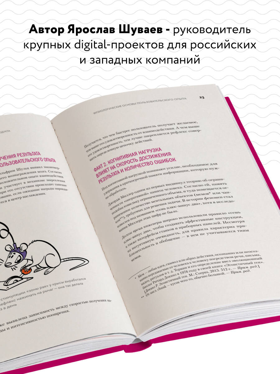 Успех любого цифрового продукта складывается из многих факторов. Ваш продукт может быть уникальным и востребованным, но без проработанного UX ему не суждено заслужить лояльность клиента. Эта простая истина прекрасно известна Ярославу Шуваеву, основателю школы UXAcademy и руководителю крупных digital-проектов для российских и западных компаний, среди которых Администрация Президента, Внешэкономбанк, Coca-Cola, «Газпром», «Татнефть», «Башнефть», Bosco, QIWI, STADA и многие другие. «Моя главная цель - описать факты через призму личного опыта и конкретные жизненные примеры», - пишет Ярослав. Его книга - авторский подход к дизайну, выработанный годами плодотворной работы. Вы сделаете пользовательский опыт лучше, побуждая клиентов возвращаться к вашему продукту снова и снова.| Издательство | ООО "Издательство "Эксмо" |