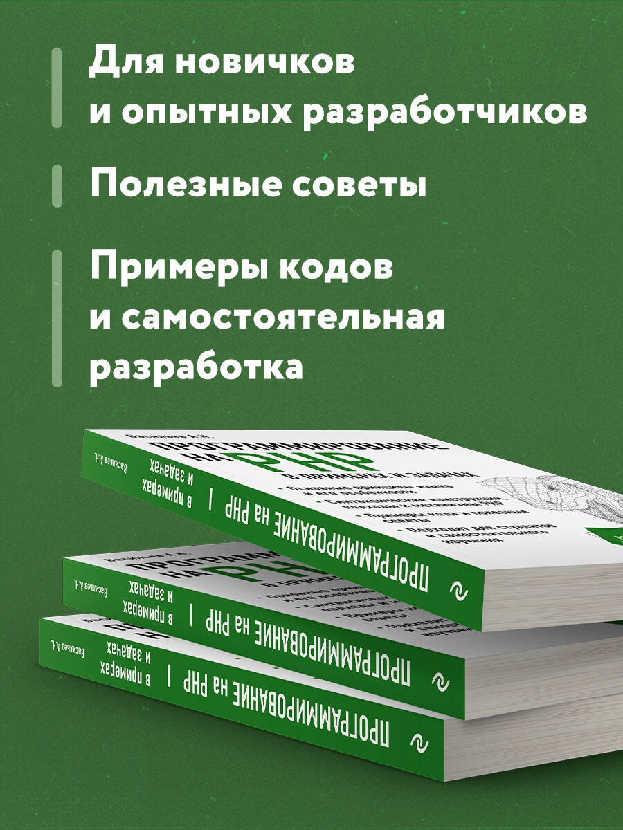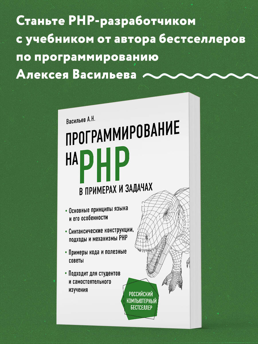 Стать PHP-программистом может каждый! В этой книге, написанной автором таких бестселлеров, как «Программирование на Java для начинающих» и «Программирование на C++ в примерах и задача»", Алексеем Васильевым, собраны абсолютно все необходимые для освоения языка знания. Автор подает информацию логично и структурированно - вы начнете с основ, позволяющих понять, как устроен PHP, познакомитесь со средами разработки для него и перейдете к освоению синтаксических конструкций и подходов, применяемых в программировании на PHP. Этот самоучитель подарит вам уверенность в собственных силах, ведь авторская методика Алексея Васильева строится на максимально понятном для новичков изложении даже самых сложных тем в программировании. Желаем успехов в обучении!| Издательство | ООО "Издательство "Эксмо" |