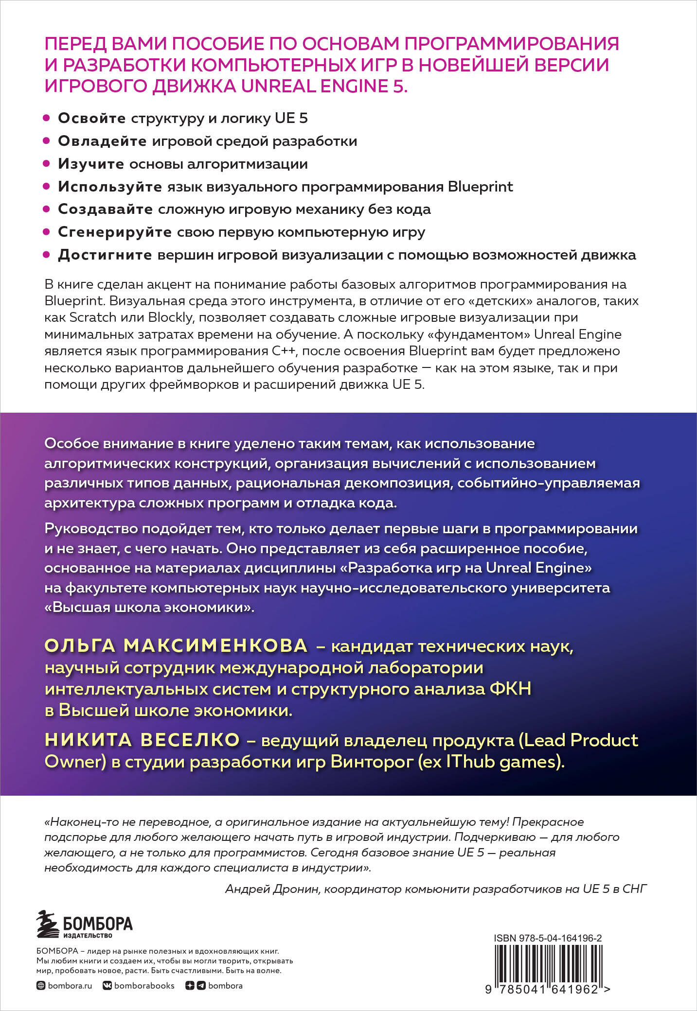 Перед вами пособие по основам программирования и разработки компьютерных игр в новейшей версии игрового движка Unreal Engine 5. • Освойте структуру и логике UE 5. • Овладейте игровой средой разработки. • Изучите основы алгоритмозации. • Используйте язык визуального программирования Blueprint. • Создавайте сложную механику без кода. • Научитесь вершинам игровой визуализации с помощью возможностей движка. Руководство подойдет тем, кто только делает первые шаги в программировании и не знает, с чего начать карьеру в индустрии игр. Оно представляет из себя расширенное пособие, основанное на лекционных и практических материалах дисциплины «Разработка игр на Unreal Engine», которая преподается авторами на факультете компьютерных наук научно-исследовательского университета «Высшая школа экономики».| Издательство | ООО "Издательство "Эксмо" |