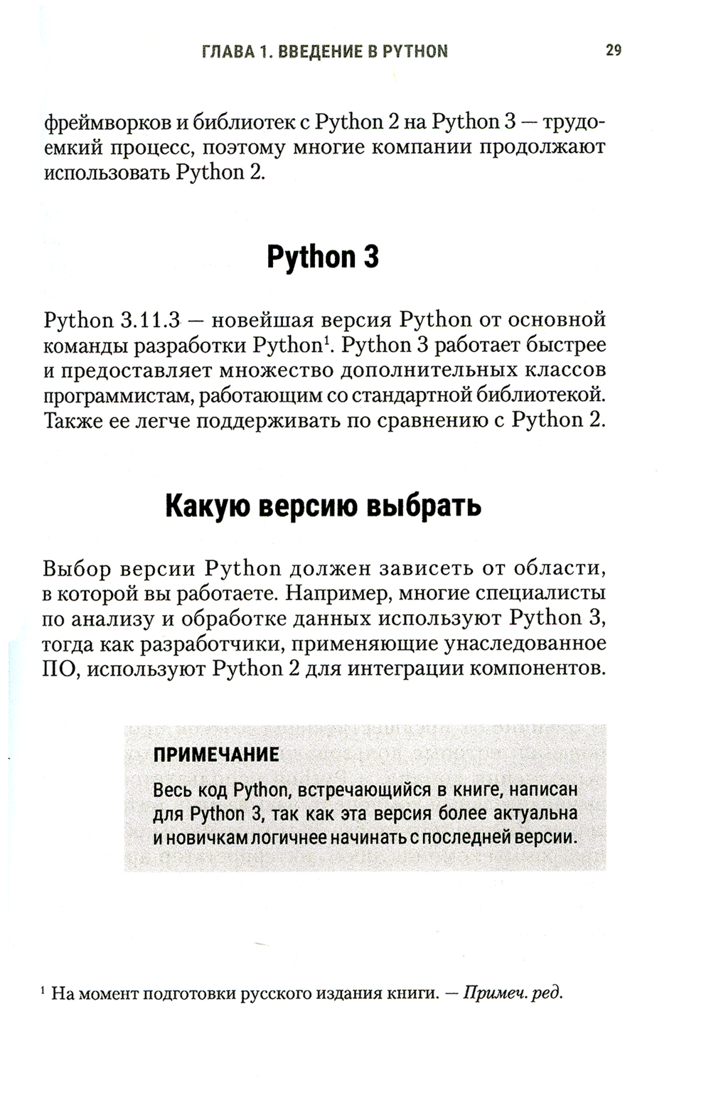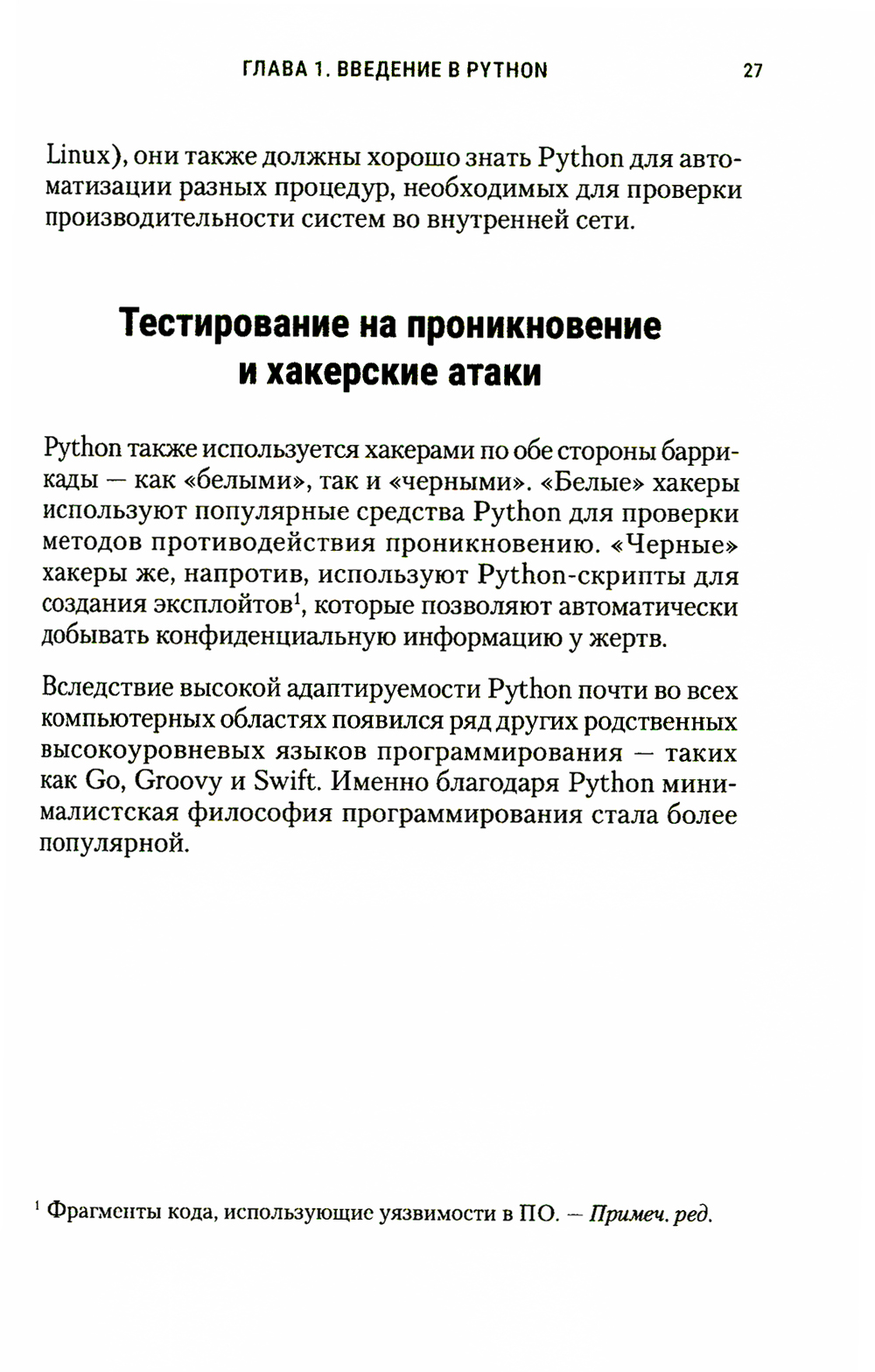 Хотите за одну неделю освоить самый популярный язык программирования? Надоело разбираться в морс хаотичной и неструктурированной информации из многочисленных бесплатных онлайн-источников? Хорошая новость! Не нужно тратить время, чтобы осилить сложные академические тексты, неоправданно дорогие онлайн-курсы или видеотуториалы, которые содержат слишком много технических деталей, непонятных для начинающих. Книга «Python за 7 дней» написана специально для новичков в программировании. Ее основные принципы - это простота и практичность. Вы познакомитесь с кратким введением в Python, чтобы понять, какую пользу можно извлечь, изучая его; узнаете, как установить Python и какой дистрибутив лучше использовать; разберетесь с объектами и методами (включая ООП), чтобы эффективно использовать этот удобный язык и его простой синтаксис. Практические упражнения в конце каждой главы идеально подойдут для отработки навыков программирования.| Издательство | Питер |