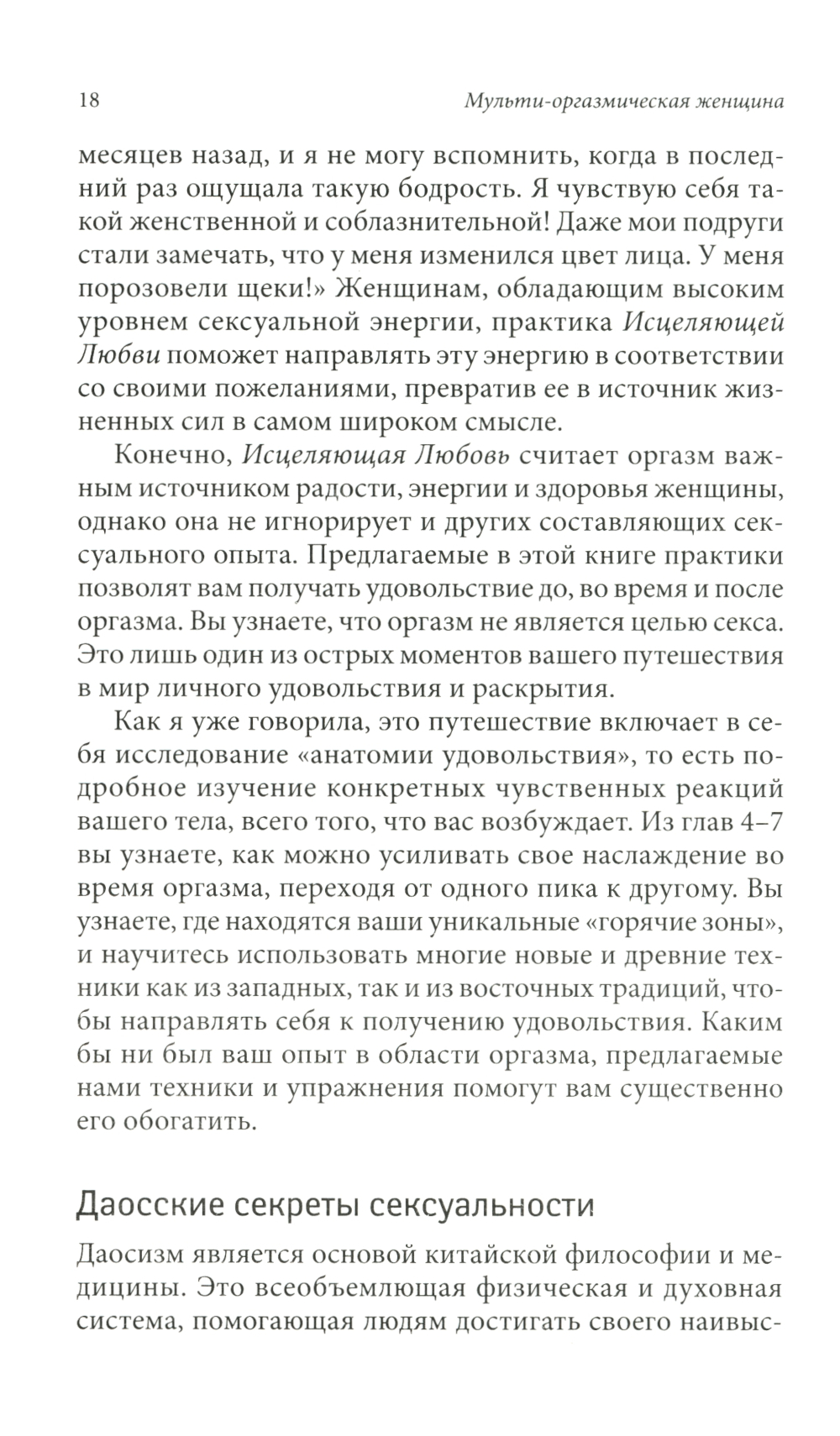 В этой книге вы познакомитесь с древней даосской системой упражнений, которые позволят вам испытать множественный оргазм, вдохнуть свежие силы в ваши интимные отношения и упрочить свой союз. Поначалу эти упражнения могут показаться забавными, но потом вы испытаете такое наслаждение и такой прилив жизненной энергии, которые вам трудно даже представить... Завершают книгу подробные практические рекомендации, касающиеся вопросов здоровья женщины в разные периоды жизни.| Издательство | София |