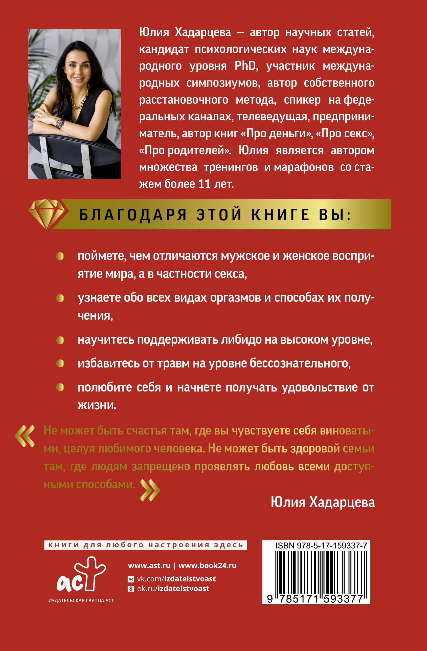 Как научиться получать удовольствие от секса и идти в него из позиции "хочу", а не из позиции "надо"? Как сохранить страсть надолго? Как поддерживать либидо на высоком уровне? Ответы на эти и другие вопросы раскрывает в своей книге "Про секс" Юлия Хадарцева - лидер в системе метода расстановок в России, мировой рекордсмен по расстановкам, кандидат психологических наук, эксперт федеральных каналов, а также автор тренингов и марафонов, которые прошли более 35 000 человек. Книга "Про секс" - это работа с телом, душой, установками и родовыми программами, которые не дают нам выйти в наслаждение. Благодаря этой книге вы поймете, чем отличаются мужское и женское восприятие мира, узнаете обо всех видах оргазмов и способах их получения, а также полюбите себя и секс. Вся серия книг Юлии построена на практическом подходе, поэтому мы также рекомендуем вам прочесть книги "Про родителей" и "Про деньги".| Издательство | Издательство "АСТ" |