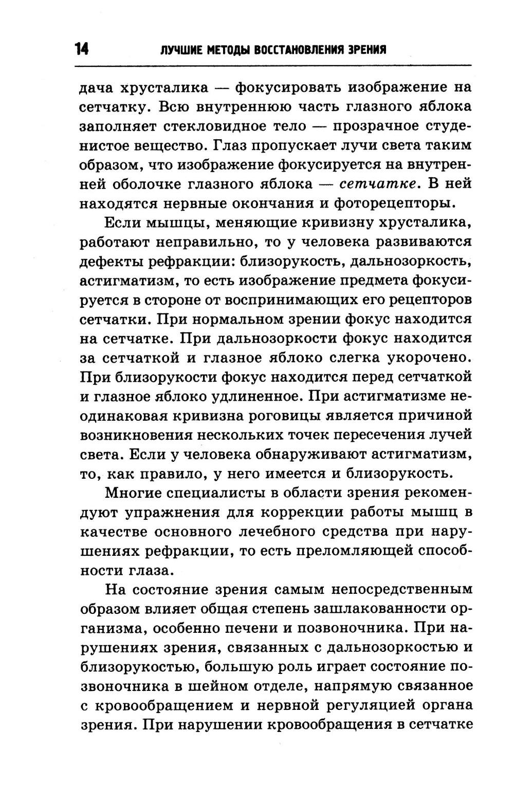 С возрастом острота зрения ослабевает, и кажется, что единственный выход - это очки и в перспективе лишь ухудшение зрения. А иногда зрение ухудшается у совсем маленьких детей - и рецепт на очки выглядит как приговор. Но это не так! Возможности для улучшения и совершенствования зрения есть у каждого и в любом возрасте. Имеется только один путь улучшения зоркости - это совершенствование зрительной системы силой воли и разума. Советы известных врачей-офтальмологов и натуропатов, людей, которые максимально стараются использовать естественные, природные методы восстановления здоровья, - Поля Брэгга, Уильяма Г. Бейтса, Владимира Жданова, Валентины Травинки, Надежды Семеновой, Мирзакарима Норбекова и многих других помогут вам укрепить мышцы глаз и улучшить зрение.| Издательство | Крылов |