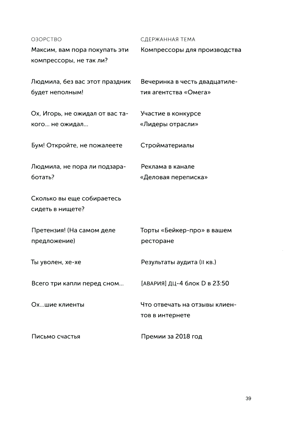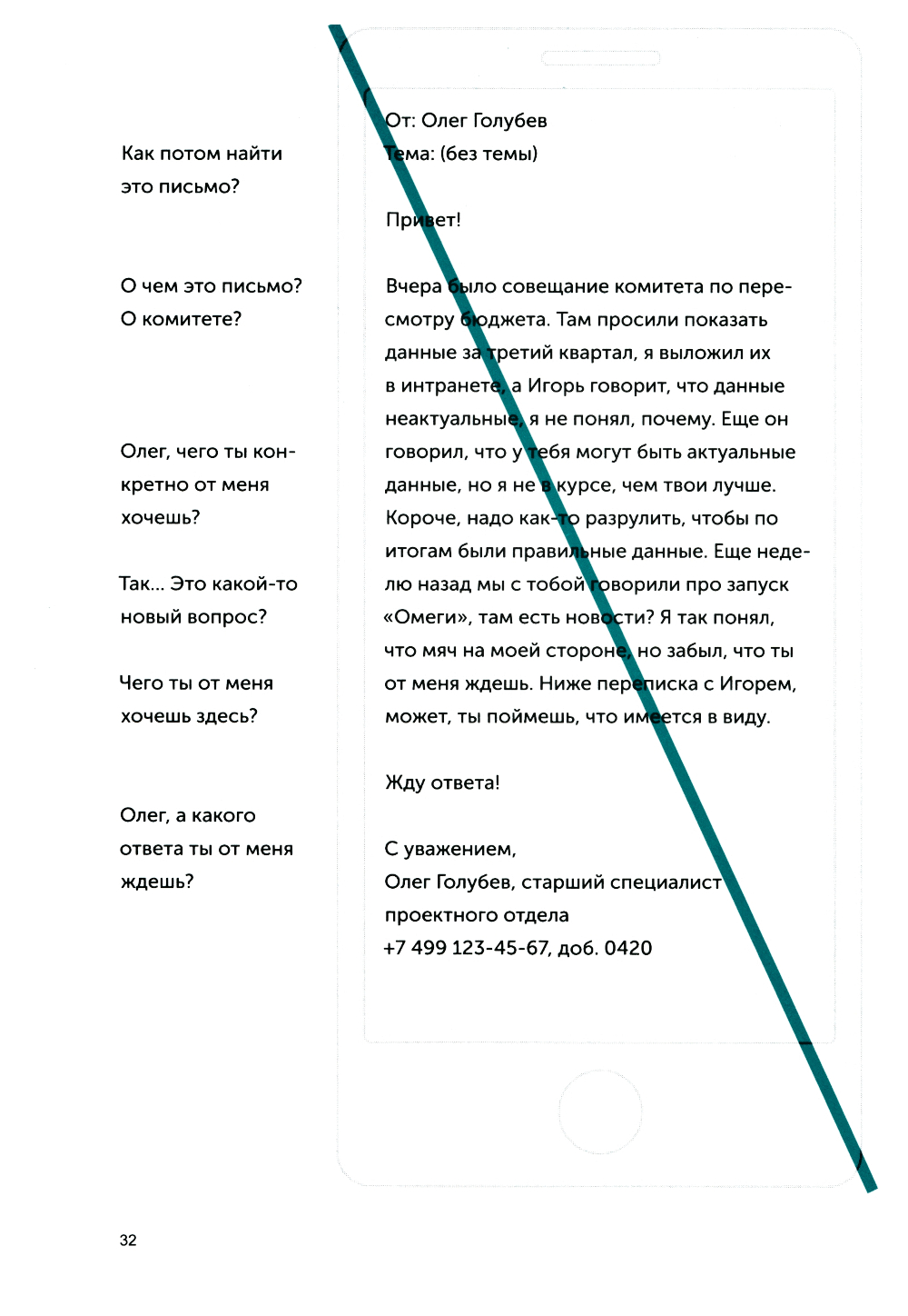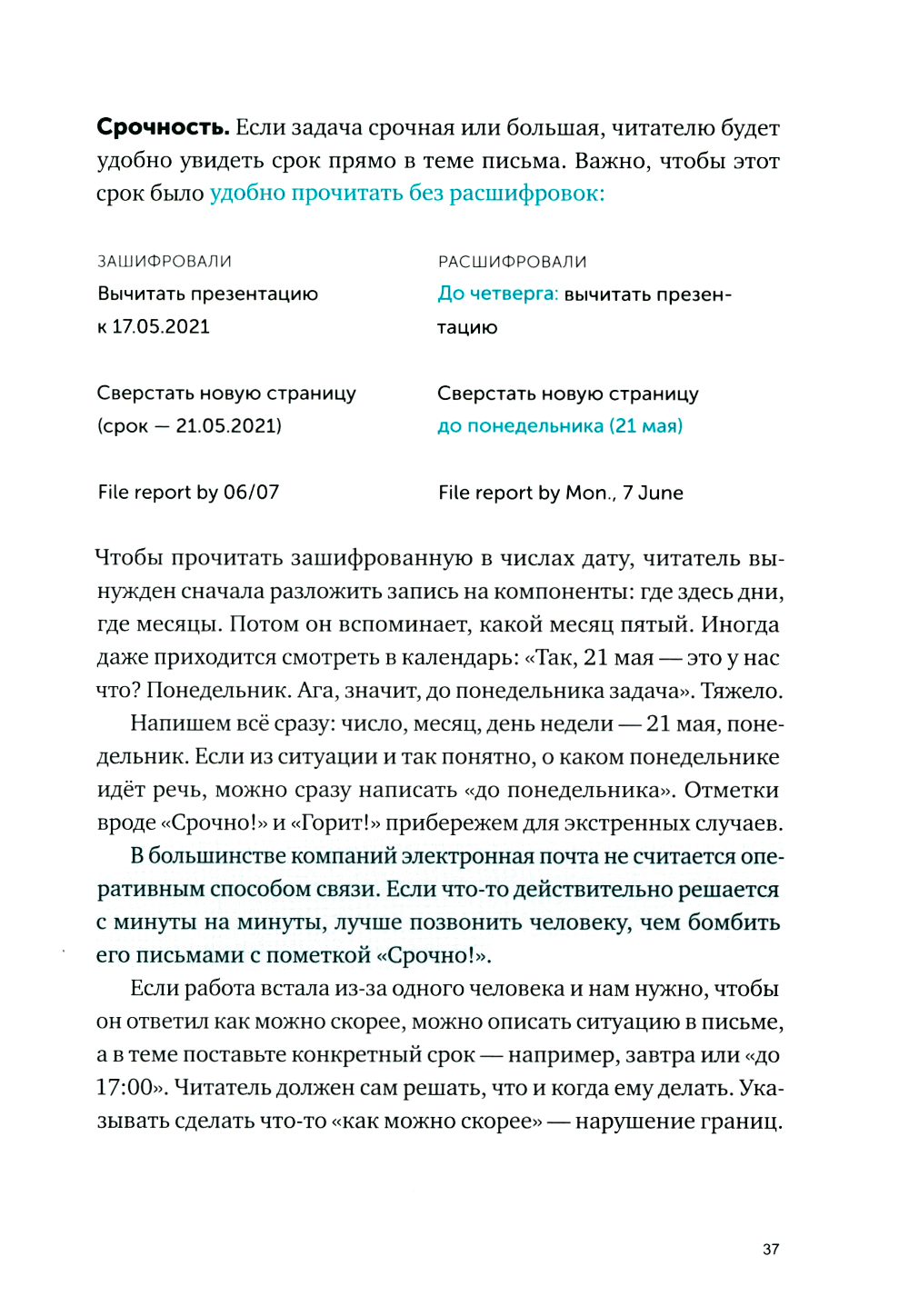 Последние двадцать лет нас учили, что деловая переписка - это бесконечные реверансы, бессмысленные формы вежливости и вымученные шаблоны: «Коллеги, я вас услышал», «Клиент прислал правочки, внесите АСАП. Заранее спасибо», «С уважением к вам и вашему бизнесу». Современное деловое письмо - это махровая фальшь, копеечные манипуляции и плохо скрываемое обоюдное презрение. Максим Ильяхов и Людмила Сарычева, авторы культовой книги «Пиши, сокращай», предлагают менять культуру делового письма и выдвигают два новых правила: уважение к адресату и забота о его интересах. Письма, составленные по таким правилам, располагают к вам людей и помогают находить общий язык. Следуя рекомендациям из книги, вы научитесь писать коммерческие предложения, сопроводительные письма, просьбы коллегам, ответы клиентам и любые другие рабочие письма.| Издательство | Альпина Паблишер |