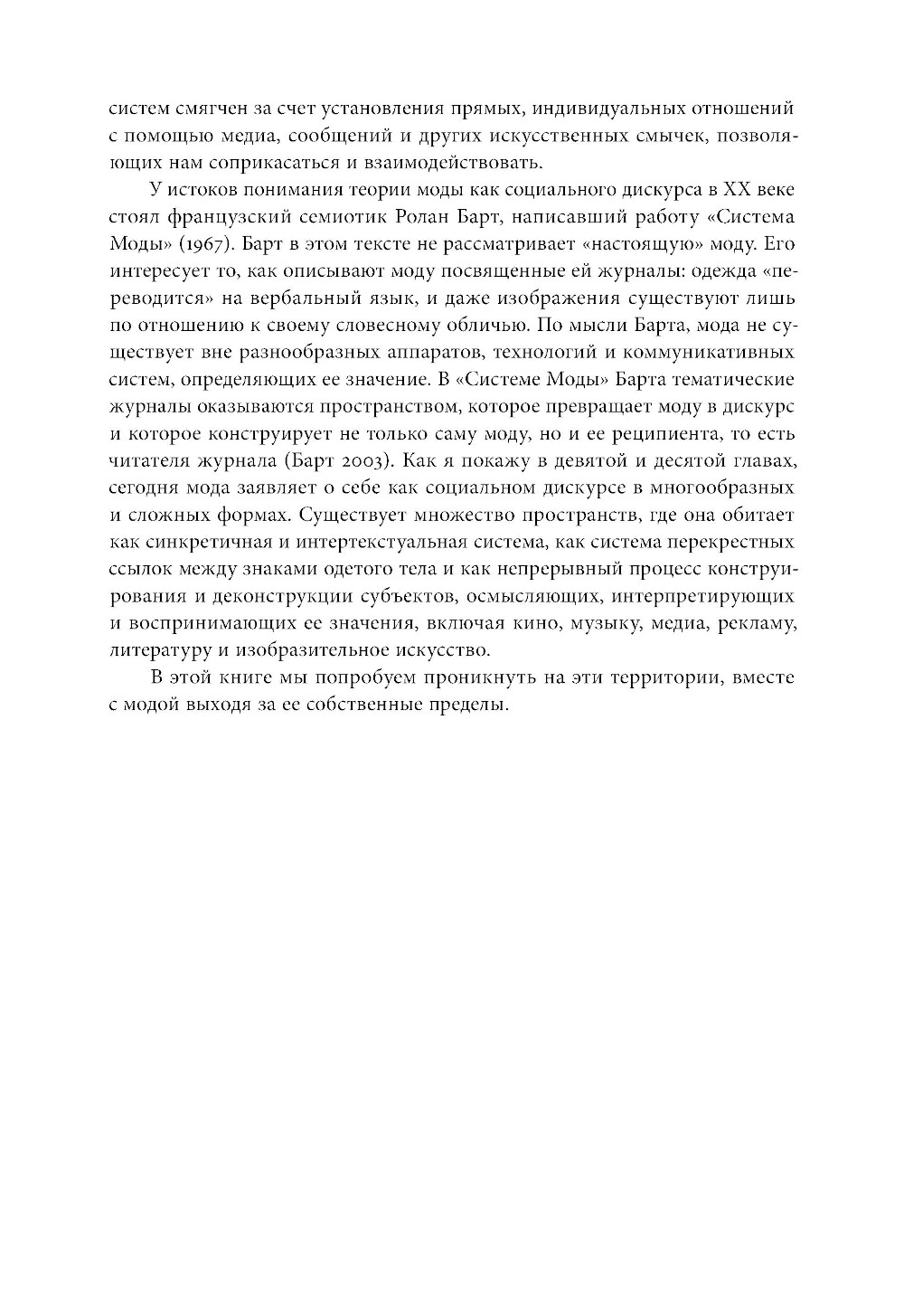 Как устроен язык моды? Опираясь на идеи Р. Барта и В. Беньямина, Патриция Калефато рассматривает моду как семиотическую систему, состоящую из знаков тела. Автор утверждает, что мода постоянно находится в процессе культурного перевода, становясь точкой пересечения самых разных языков - не только кино, литературы и музыки, но и городских дорог, униформ или профессий. Первые главы посвящены специфике формирования и функционирования нарративов моды во времени (от исторического до биографического) и пространстве (от городского до виртуального). Далее Калефато исследует тело как социальный субъект, встроенный в систему моды, а в заключительной части анализирует, как технологии коммуникации изменили само определение человеческой телесности в общественном сознании. От городской культуры XIX века до переработки одежды, от итальянского стиля до пластической хирургии и татуировок - это исследование демонстрирует, насколько крепкими нитями мода связана с множеством социокультурных и природных явлений.