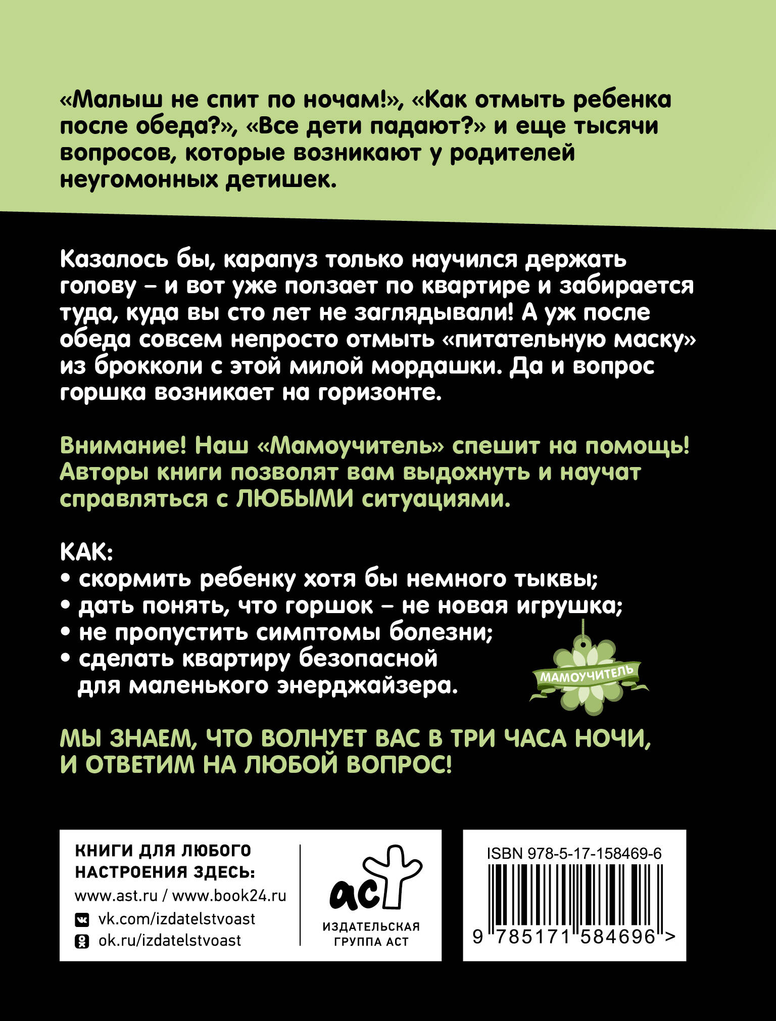 "Малыш не спит по ночам!", "Как отмыть ребенка после обеда?", "Все дети падают?" и еще тысячи вопросов, которые возникают у родителей неугомонных детишек. Казалось бы, карапуз только научился держать голову - и вот уже ползает по квартире и забирается туда, куда вы сто лет не заглядывали! А уж после обеда совсем непросто отмыть "питательную маску" из брокколи с этой милой мордашки. Да и вопрос горшка возникает на горизонте. Внимание! Наш Мамоучитель спешит на помощь! Авторы книги позволят вам выдохнуть и научат справляться с ЛЮБЫМИ ситуациями. КАК? • Скормить ребенку хотя бы немного тыквы; • Дать понять, что горшок - не новая игрушка; • Не пропустить симптомы болезни; • Сделать квартиру безопасной для маленького энерджайзера. Мы знаем, что волнует вас в три часа ночи, и ответим на любой вопрос!| Издательство | Издательство "АСТ" |