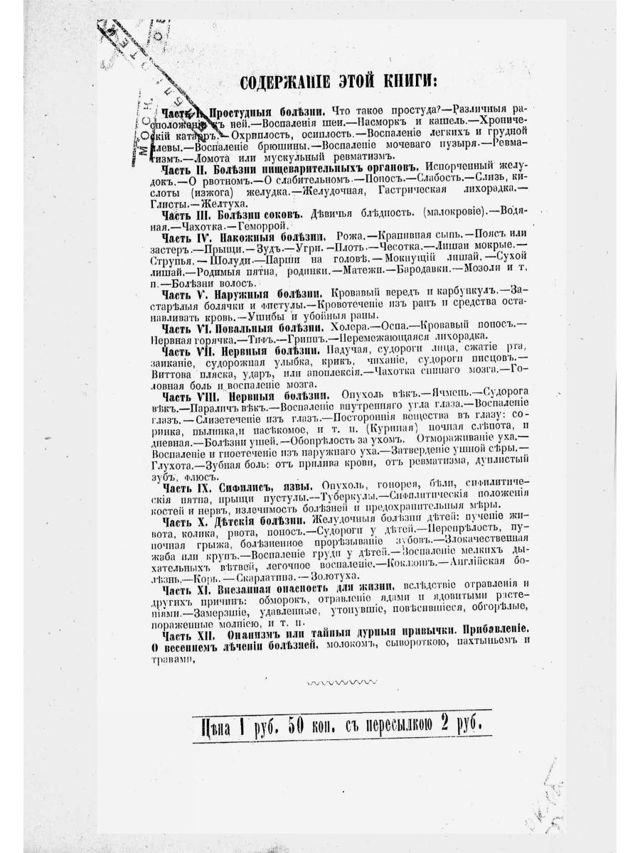 Верные, простые и дешевые лекарства для исцеления болезней, свойственных каждому возрасту и обоего пола, без пособия доктора и аптеки, содержащий описание признаков, причин болезненных припадков и средств к предупреждению их. Практические наставления, дошедшие до нас спустя сто лет, но актуальные и по сей день, по наставлениям которых можно и сейчас внести разнообразие в свою повседневную жизнь и отдать дань тому самому прошлому, где, как хочется верить, было и полезно, и чинно.| Издательство | Т8 RUGRAM |
