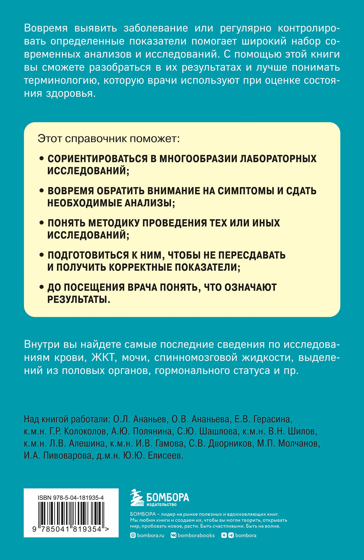 Аннотация: Анализы. Актуальные сведения по лабораторным исследованиям под рукой