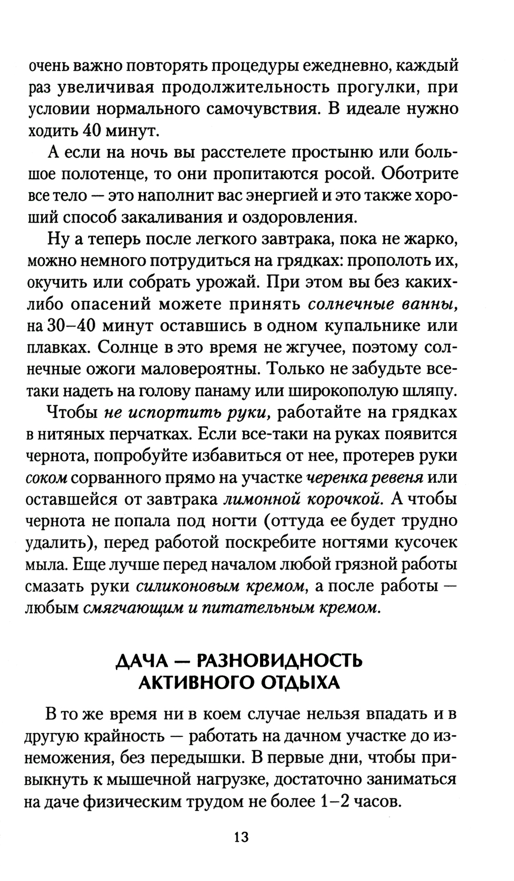 Дача не только место для летнего отдыха. Это еще и место, где можно поправить свое пошатнувшееся здоровье. А дачный участок - источник жизненно необходимых нашему организму растительных продуктов питания. О пользе овощей нам хорошо известно. Но есть еще сорняки, так называемые дикоросы, которые содержат огромное количество полезных для нашего организма веществ. Об овощах, а главное, о дикоросах - растениях, которые попадают в разряд сорняков, рассказывают авторы книги. В книге говорится об использовании в дачной кулинарии и применении с лечебной целью некоторых хорошо нам известных овощных культур, а также порядком надоевших и в то же время вкусных и питательных сорняках: крапиве, сныти, подорожнике, пырее, гусятнике, зверобое, полыни, пастушьей сумке и многих других. Но есть еще съедобные цветы. Пополняя наш растительный рацион, они тоже оздоравливают нас. Достоинством книги является и то, что в ней даются рецепты овощных блюд, блюд из дикоросов и препаратов из лекарственных трав. Авторы надеются, что выращенные на даче овощи и произрастающие за пределами дачного участка дикоросы помогут читателям разнообразить и пополнить полезными веществами свой дачный рацион. Пусть же овощи и сорняки укрепят ваше здоровье!| Издательство | Диля |