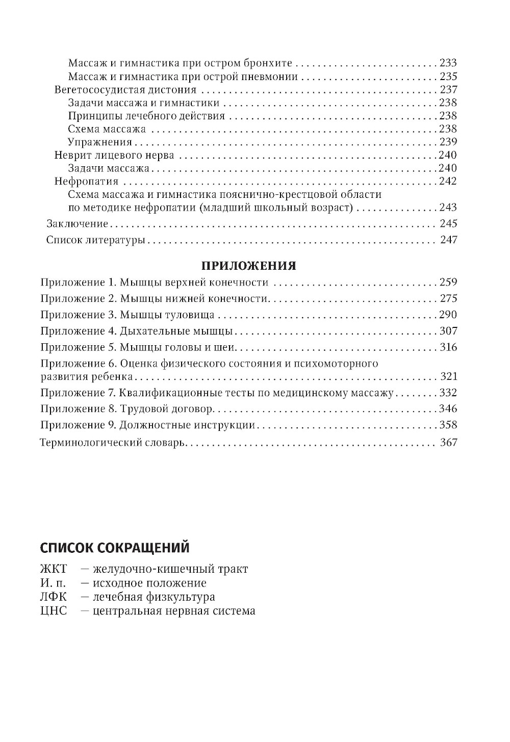 В руководстве в систематизированном виде представлена современная информация о медицинском массаже в педиатрии. На основе своего многолетнего опыта работы в области реабилитации и педиатрии авторы описали методики детского массажа и гимнастики в соответствии с требованиями образовательных стандартов и доказательной медицины. Освещена динамическая анатомия мышц, приведен механизм лечебного действия, рассмотрена техника массажа и гимнастики у здоровых детей первого года жизни. В специальном разделе изложена методика массажа и гимнастики при различных заболеваниях в раннем, дошкольном и школьном возрасте. Отдельная глава посвящена нормативно-правовому регулированию деятельности по медицинскому массажу. Книга предназначена врачам-педиатрам, специалистам в области медицинского массажа, преподавателям и студентам медицинских вузов и колледжей.| Издательство | ГЭОТАР-Медиа |