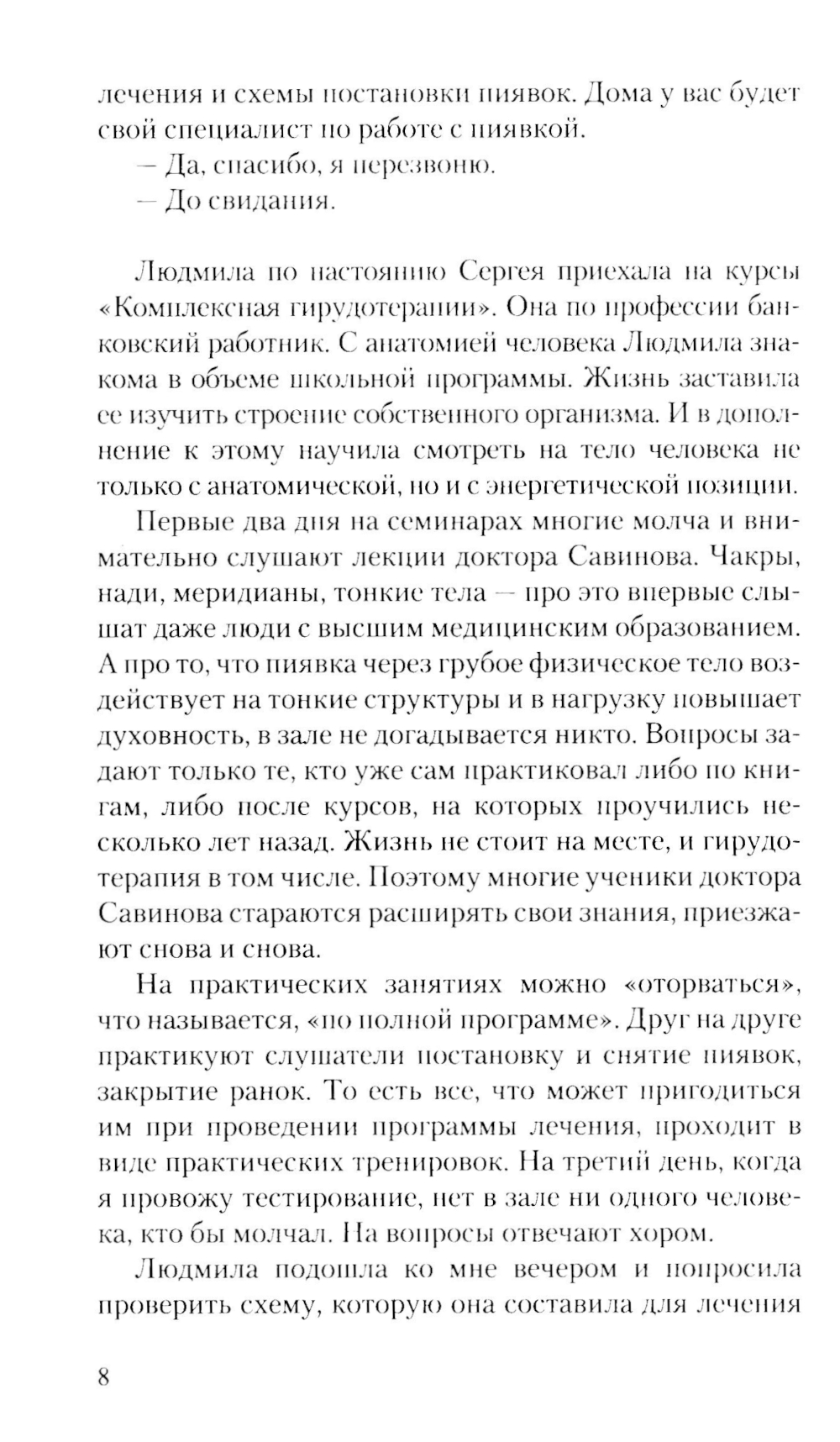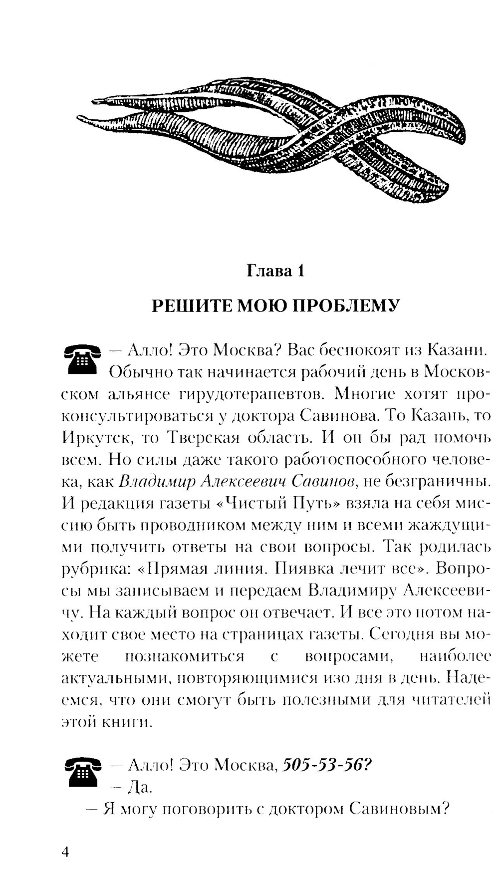 Книга знакомит не просто с эффективным методом лечения различных заболеваний с помощью обыкновенной пиявки. Авторы рассматривают болезни человека как энергетические нарушения его биополя и находят им место среди насущных проблем современной цивилизации, в том числе нравственного и духовного кризиса. Главная цель книги - показать, что крошечное существо - пиявка не только избавит от физических страданий, но и поможет возродиться духовно. Книга рассчитана на широкий круг читателей.