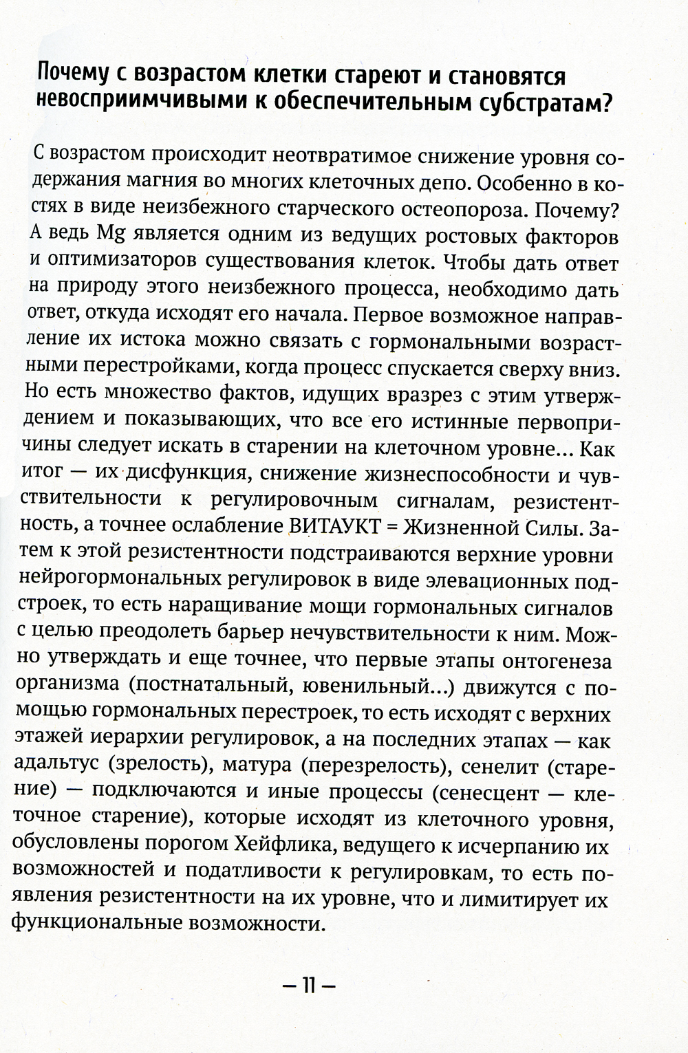 Глубокий анализ существующих причин старения позволил автору создать свою единую теорию «биологии старения», которая строится на интеграции процессов сенесцента (на уровне клеток) и сенелита (на системном уровне). Показана решающая роль магния и оксида азота в регулировке на клеточном уровне сенесцента. Именно сенесцент (нарушение гомеостазов) определяет механизм сенелита (нарушение гормезиса и витаукта), а с ними и возрастзависимых «болезней», которые на самом деле не болезни, а естественные анизомалии, то есть механизмы реализации старения. Только правильное понимание сути природы старения позволит выйти на правильные пути преодоления возрастных болезней и продления жизни человека через механизмы неотении (продлённой молодости), чему посвящена следующая книга автора «Биология молодости».| Издательство | Амрита-Русь |