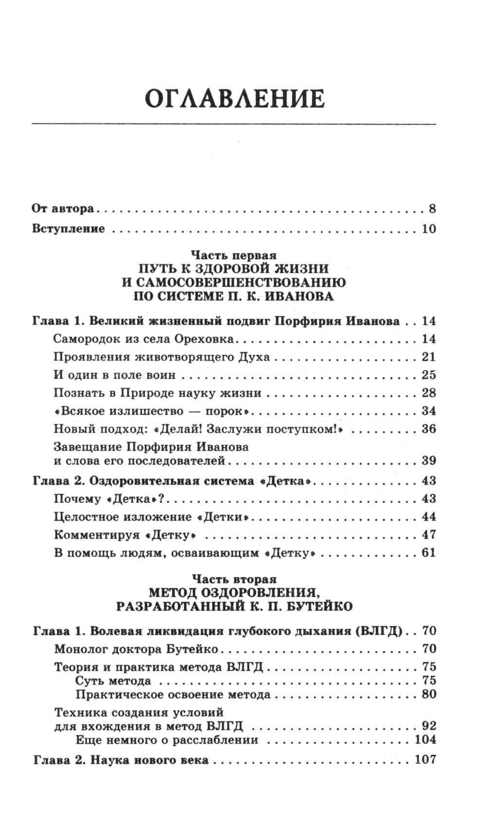 Эта книга уникальна: через учение одного выдающегося практика оздоровления - доктора Константина Павловича Бутейко - вы сможете понять суть учений, оставленных нам не менее выдающимся человеком и мастером - Порфирием Корнеевичем Ивановым, которого Бутейко искренне почитал и называл своим учителем. На страницах книги подробно изложены обе методики: «Детка» Порфирия Иванова и метод волевой ликвидации глубокого дыхания Бутейко. Даны комментарии К. П. Бутейко к каждому пункту оздоровительной программы П. К. Иванова. Кроме того, вы получите возможность ознакомиться с философской составляющей обеих методик, а это путь не только к физическому здоровью, но и к духовному совершенству.| Издательство | Крылов |