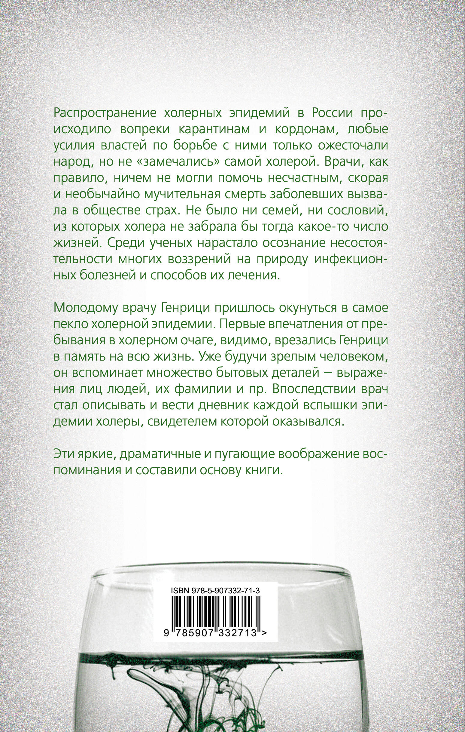 Распространение холерных эпидемий в России происходило вопреки карантинам и кордонам, любые усилия властей по борьбе с ними только ожесточали народ, но не «замечались» самой холерой. Врачи, как правило, ничем не могли помочь заболевшим, их скорая и необычайно мучительная смерть вызвала в обществе страх. Не было ни семей, ни сословий, из которых холера не забрала тогда какое-то число жизней. Среди ученых нарастало осознание несостоятельности многих воззрений на природу инфекционных болезней и способов их лечения. Молодому врачу Генрици пришлось окунуться в самое пекло холерной эпидемии. Первые впечатления от пребывания в холерном очаге, видимо, врезались Генрици в память на всю жизнь. Уже будучи зрелым человеком, он вспоминает множество бытовых деталей - выражения лиц людей, их фамилии и пр. Впоследствии врач стал описывать и вести дневник каждой вспышки эпидемии холеры, свидетелем которой оказывался. Эти яркие, драматичные и пугающие воображение воспоминания и составили основу книги.| Издательство | Родина Издательство ООО |