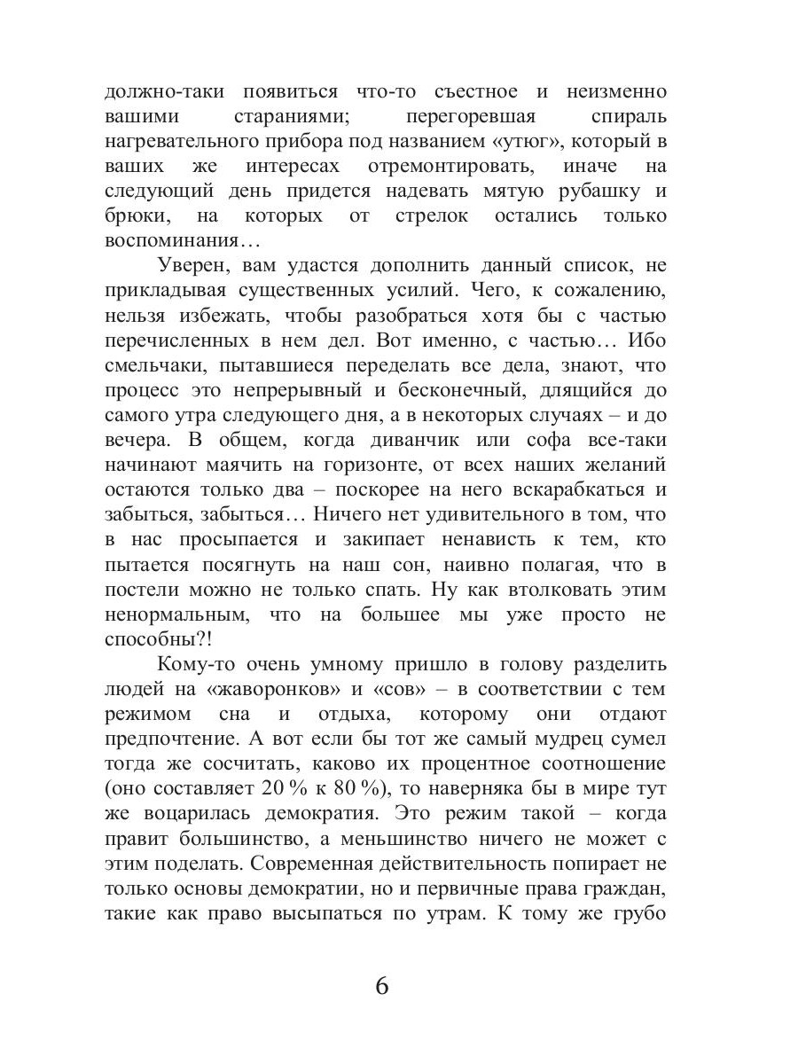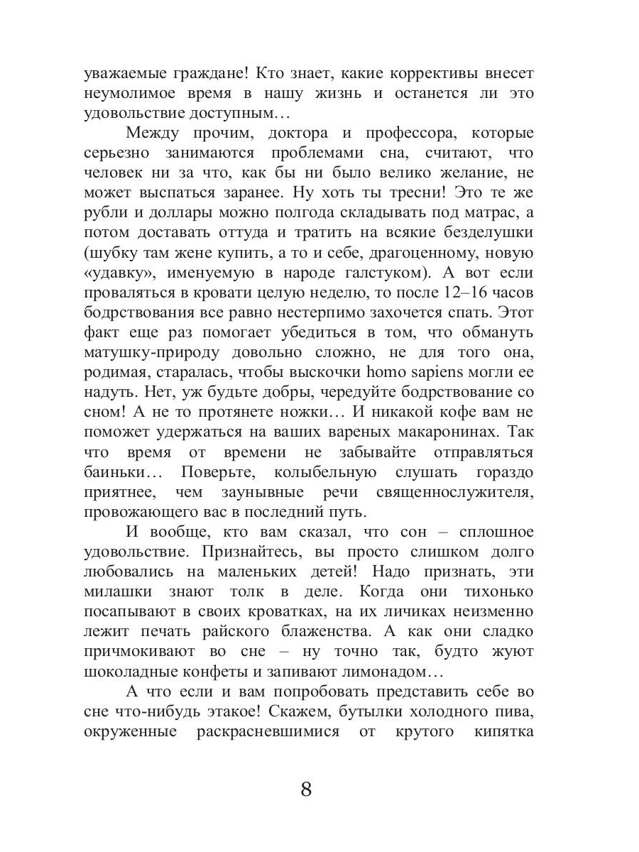 Вас мучит бессонница? Хотите избавиться от этой проблемы, а во время сна видеть не кошмары, а радужные картинки, дарящие вам по утрам чувство бодрости и прекрасное настроение? Автор книги делится с читателем бесценными секретами сладкого сна. Кроме того, стиль, в котором Александр Мадера пишет свои книги, доставит любителям занятного чтива неимоверное удовольствие от самого процесса знакомства с данным шедевром.| Издательство | Т8 RUGRAM |