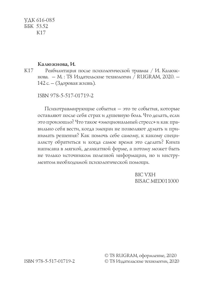 Психотравмирующие события - это те события, которые оставляют после себя страх и душевную боль. Что делать, если это произошло? Что такое «эмоциональный стресс» и как правильно себя вести, когда эмоции не позволяют думать и принимать решения? Как помочь себе самому, к какому специалисту обратиться и когда самое время это сделать? Книга написана в мягкой, деликатной форме, а потому может быть не только источником полезной информации, но и инструментом необходимой психологической помощи.| Издательство | Т8 RUGRAM |