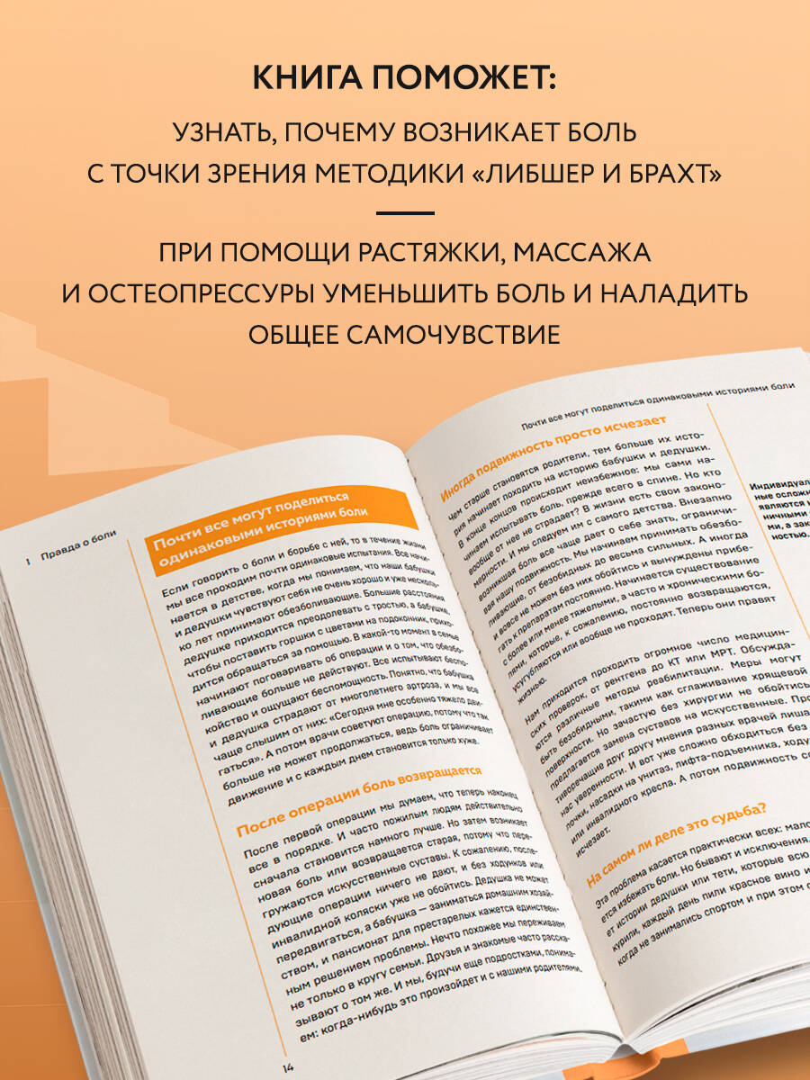 Разработанная в Германии система избавления от болей, локализованных в области: головы, шеи, поясницы, плечевых и коленных суставов. Автор Роланд Либшер-Брахт разработал упражнения для всего тела на основе современных медицинских исследований, а также собственного опыта клинической практики. - Он наблюдал за пациентами 10 лет и увидел свыше 17 000 болевых состояний. Роланд пришел к выводу, что основная причина болей - сильное напряжение мышц, которое заставляет мозг генерировать болевые ощущения, чтобы предотвратить повреждение суставов и позвоночника. - Для того, чтобы снять это напряжение, автор совместно с доктором Петрой Брахт, специализирующейся на общей медицине и натуропатии, разработал комплекс упражнений и техник массажа, которые можно легко выполнять дома. - Тысячи пациентов клиники Роланда подтвердили эффективность этих упражнений Либшер-Брахта в регулярных опросах. По последним данным, боль в шее уменьшилась у 81% из 112 участников исследования за 3 дня; боль в пояснице - у 90% участников за 7 дней, а в коленях - у 75%, включая участников, страдающих артрозом. «Наша методика подходит для самолечения или прекрасно дополнит и расширит традиционную схему вашего лечения. Мы уверены, что с помощью упражнений из этой книги каждый сможет жить без боли, оставаться здоровыми и гибкими до самой старости. Вы еще будете с внуками в футбол играть - так мы всегда говорим нашим пациентам». - Р. Либшер-Брахт «Метод Либшер и Брахт позволяет мне быть в лучшей форме в профессиональном спорте». - ПЕР МЕРТЕЗАКЕР, немецкий футболист, Чемпион мира 2014 года. В данный момент занимает должность руководителя академии «Арсенал» «Очень толковая книга по самопомощи, в которой гармонично сочетается теория и практика для устранения боли во всем теле. Даны пошаговые фотографии, упражнения можно выполнять с учетом личных особенностей и в любом удобном вам месте. Будет полезна всем, кто хочет оставаться подвижным и здоровым до самой старости!» - Андрей Галкин, самый популярный остеопат России, автор медицинского блога rulikadoc и книги «Загадай себе счастье. Как перепрошить свое сознание, чтобы жить полной жизнью»| Издательство | ООО "Издательство "Эксмо" |