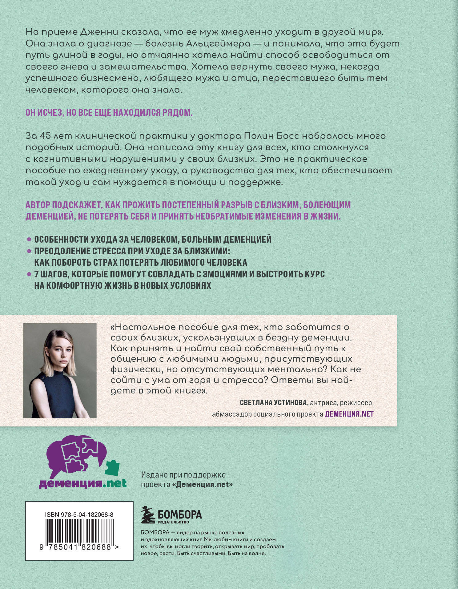 Уход за тяжело болеющим человеком требует не только невероятных физических, но и моральных сил. Зачастую людей тяготит их обязанность опекунства над близкими, ведь это постепенно приводит к выгоранию. Постоянный стресс, связанный с беспокойством и волнением за дорогого человека, бессонница и постоянное чувство потери - все это может вывести из равновесия, а при затяжном состоянии ввести в депрессию. Эта книга-поддержка создана специально для таких случаев: вы узнаете, как принять потерю и побороть тревогу, какие ритуалы следует ввести в повседневную жизнь с больным деменцией и как найти время на заботу о себе.| Издательство | ООО "Издательство "Эксмо" |
