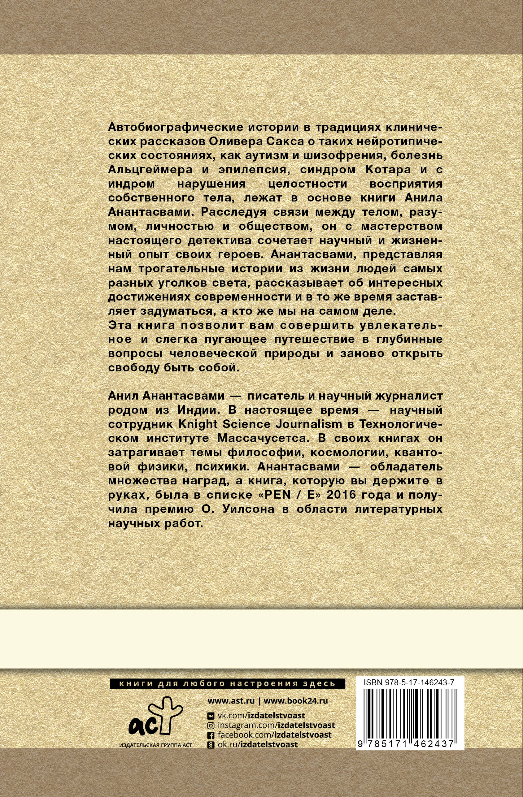 Истории в лучших традициях клинических рассказов Оливера Сакса! Тайны мозга от ведущего научного журналиста Все тайны аутизма, шизофрении, болезни Альцгеймера, синдрома Котара и других заболеваний в одной книге! "Автобиографические истории о таких состояниях, как синдром Аспергера и шизофрения крайне занимательны, и заполнить подобные рассказы научными данными - сложная задача. Анантасвами убедительно сочетает научный опыт с жизненным, числа и индивидуальность" - NATURE. "Выбирая себе пляжное чтение, вы вряд ли остановитесь на нейробиологии. Но у журналиста Анила Анантасвами талант делать сложные темы понятными для всех" - Men's Journal. "Потрясающее путешествие и великолепная книга, сочетающая современную науку с западной и восточной философией. Ваша жизнь точно не будет прежней после прочтения" - New Scientist.