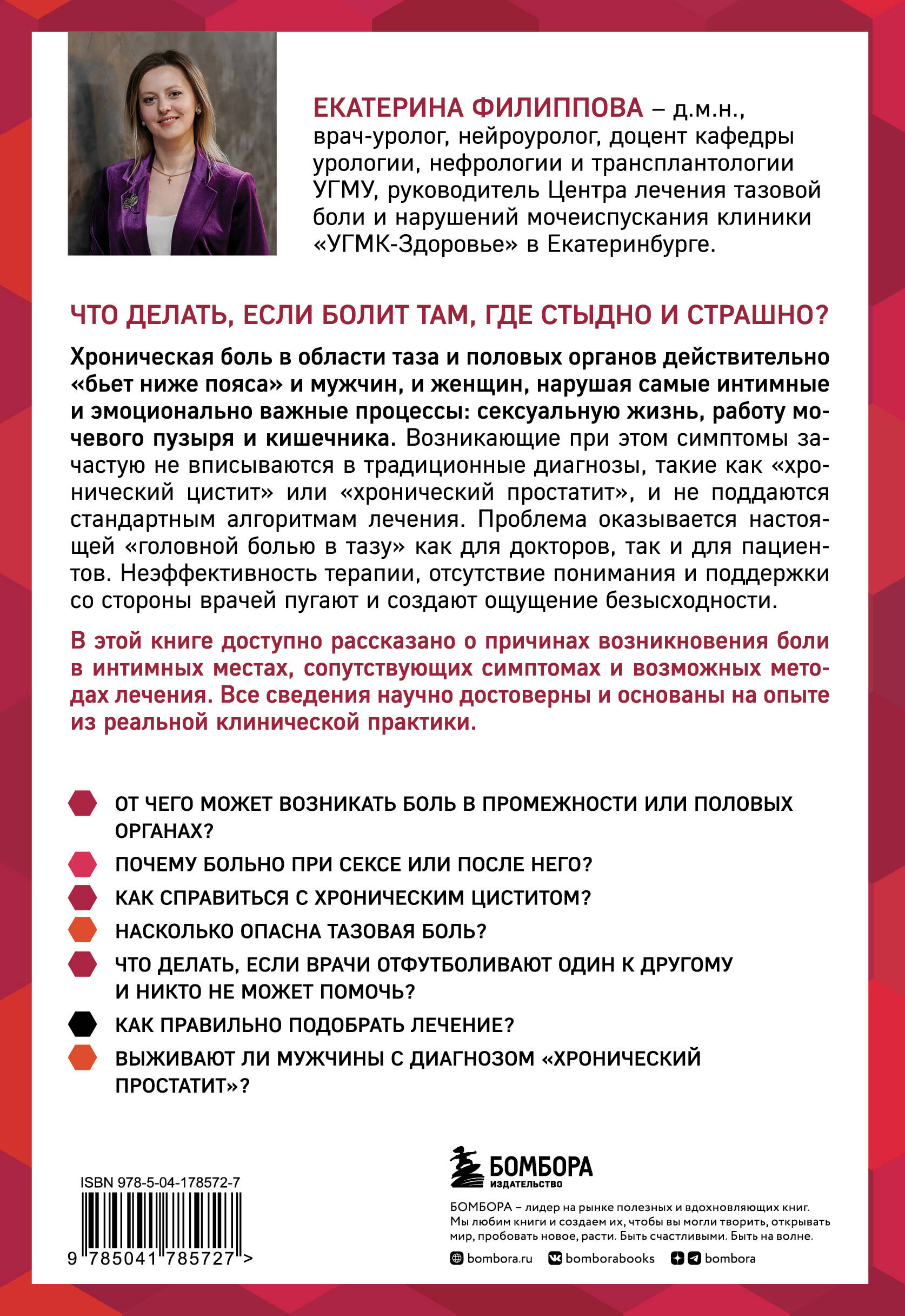 Чувствуете дискомфорт, жжение и боль «там»? Часто ходите в туалет? Испытываете боли во время секса? Давно и безуспешно лечитесь у урологов или гинекологов? Синдром хронической тазовой боли - заболевание, которое не вписывается в традиционные медицинские шаблоны и не поддается стандартным алгоритмам лечения. Оно возникает «из ниоткуда» - ни явных инфекций, ни патологии внутренних органов обнаружить не удается, а боль не проходит и продолжает красть вашу жизнь день за днем. Эта книга содержит исчерпывающую информацию о причинах возникновения тазовой боли, о сопутствующих симптомах и вариантах лечения. Екатерина Филиппова - врач-уролог, оперирующий хирург и доктор медицинских наук, расскажет все о том, как проявляется и почему возникает тазовая боль. Объяснит, почему во всем может быть виноват мышечный спазм в области промежности, и предложит эффективные инструменты борьбы с ним: - специальные упражнения; - техники самостоятельного массажа; - методы физиотерапии; - дыхательные практики; - психологические советы; - руководство по эффективным медикаментам. Эта книга не заменит реального врача, но зато поможет определить природу вашей боли, покажет ключи решения проблемы и поднимет ваш боевой дух.| Издательство | ООО "Издательство "Эксмо" |