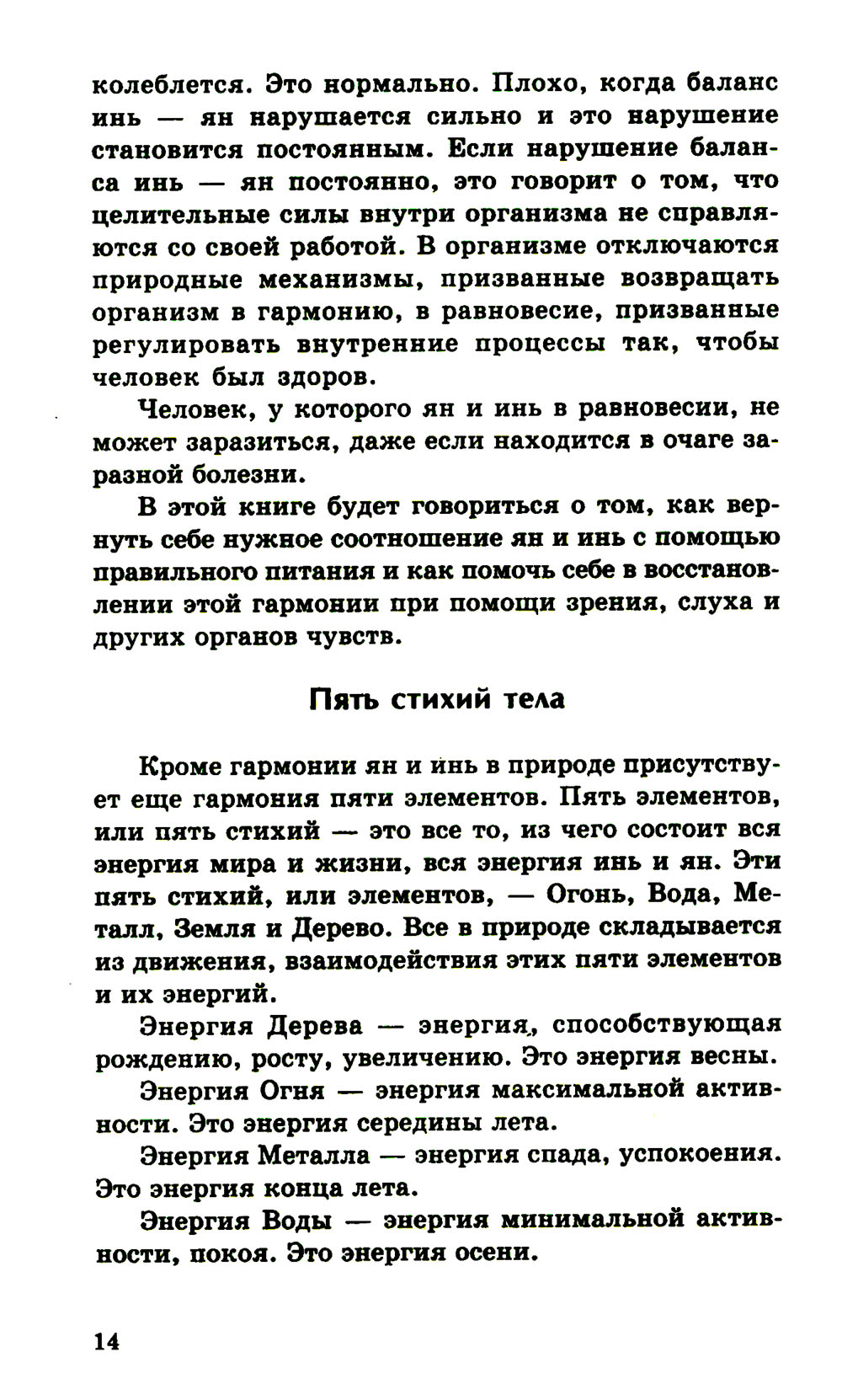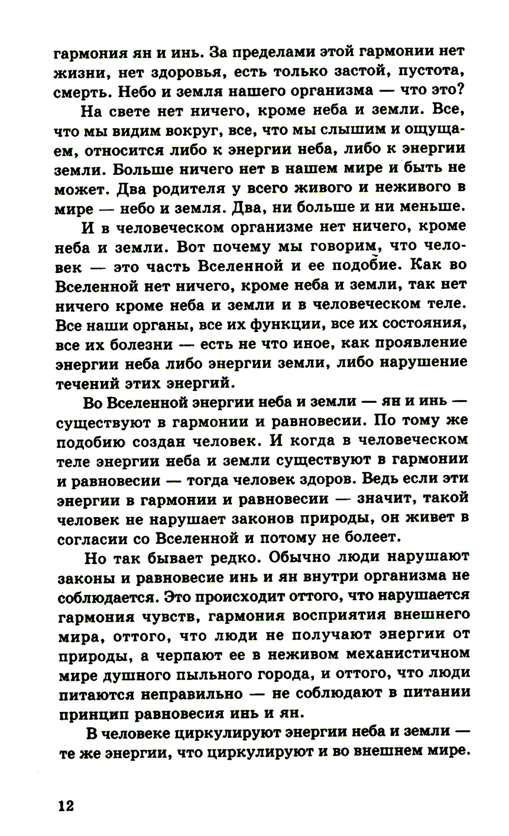 Задача человека, который хочет быть здоровым, - получать из внешнего мира энергии инь и ян в гармонии, в разумном, правильном сочетании - в таком сочетании, в котором они находятся в природе. В этой книге говорится о том, как вернуть себе нужное соотношение ян и инь с помощью правильного питания и как помочь себе в восстановлении этой гармонии при помощи зрения, слуха и других органов чувств.| Издательство | Крылов |