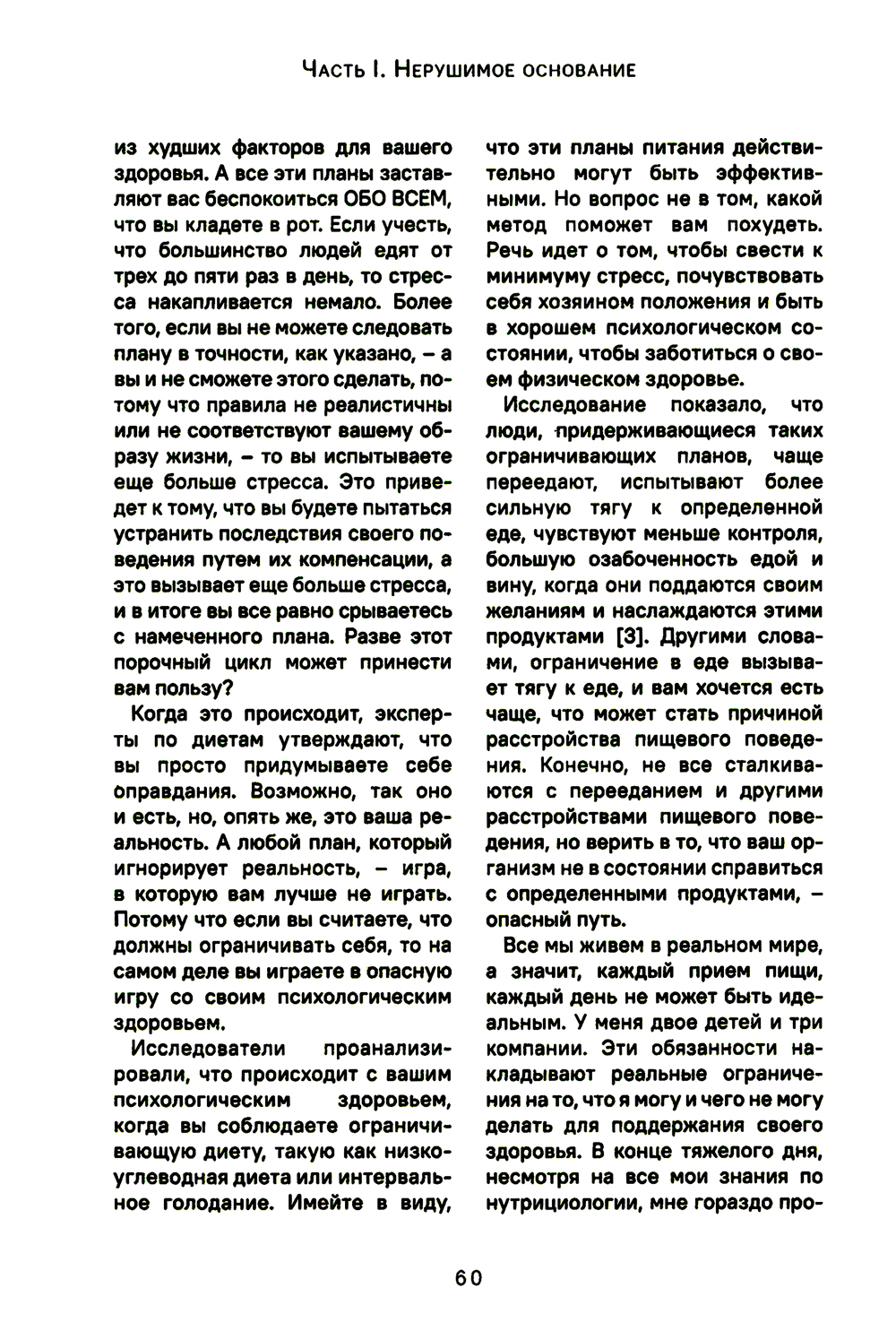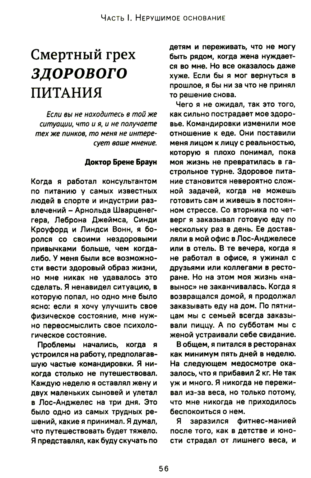 Индустрия диетологии навязывает нам одну диету за другой, не давая передышки. Кому нужен еще один ограничивающий и нереалистичный план питания? Давайте научимся наслаждаться тем, что мы едим (включая еду навынос!), и не вредить при этом здоровью. Адам Борнштейн - автор бестселлеров и консультант таких икон здорового образа жизни, как Арнольд Шварценеггер, Леброн Джеймс, Синди Кроуфорд и Линдси Вонн. Он - один из самых авторитетных специалистов в области здоровья, потому что умеет добиваться результата без уловок, сомнительных добавок и мучений. В этой простой и доступной книге Борнштейн утверждает, что если хочется улучшить свое здоровье и похудеть навсегда, то нужно забыть об общепринятых диетах и следовать успешным привычкам и принципам, которые не встретишь в нутрициологии и фитнесе. В книге представлены: - шестинедельный план, позволяющий есть все, что нравится, не считая калорий и не зацикливаясь на макроэлементах; - варианты еды навынос из пятидесяти самых посещаемых ресторанов Америки (чтобы есть где угодно, не мучаясь чувством вины); - тридцать сытных и питательных рецептов блюд, включая французские тосты с корицей и изюмом, начос, макароны с сыром, сладким картофелем и беконом; - быстрые и легкие блюда для самостоятельного приготовления, а также эффективные упражнения, выполнение которых занимает всего 15-30 минут. Эта книга открывает самый эффективный способ формирования здоровых привычек, а также помогает освободиться от чувства вины и вести здоровый образ жизни, к которому все так стремятся.| Издательство | Библос |