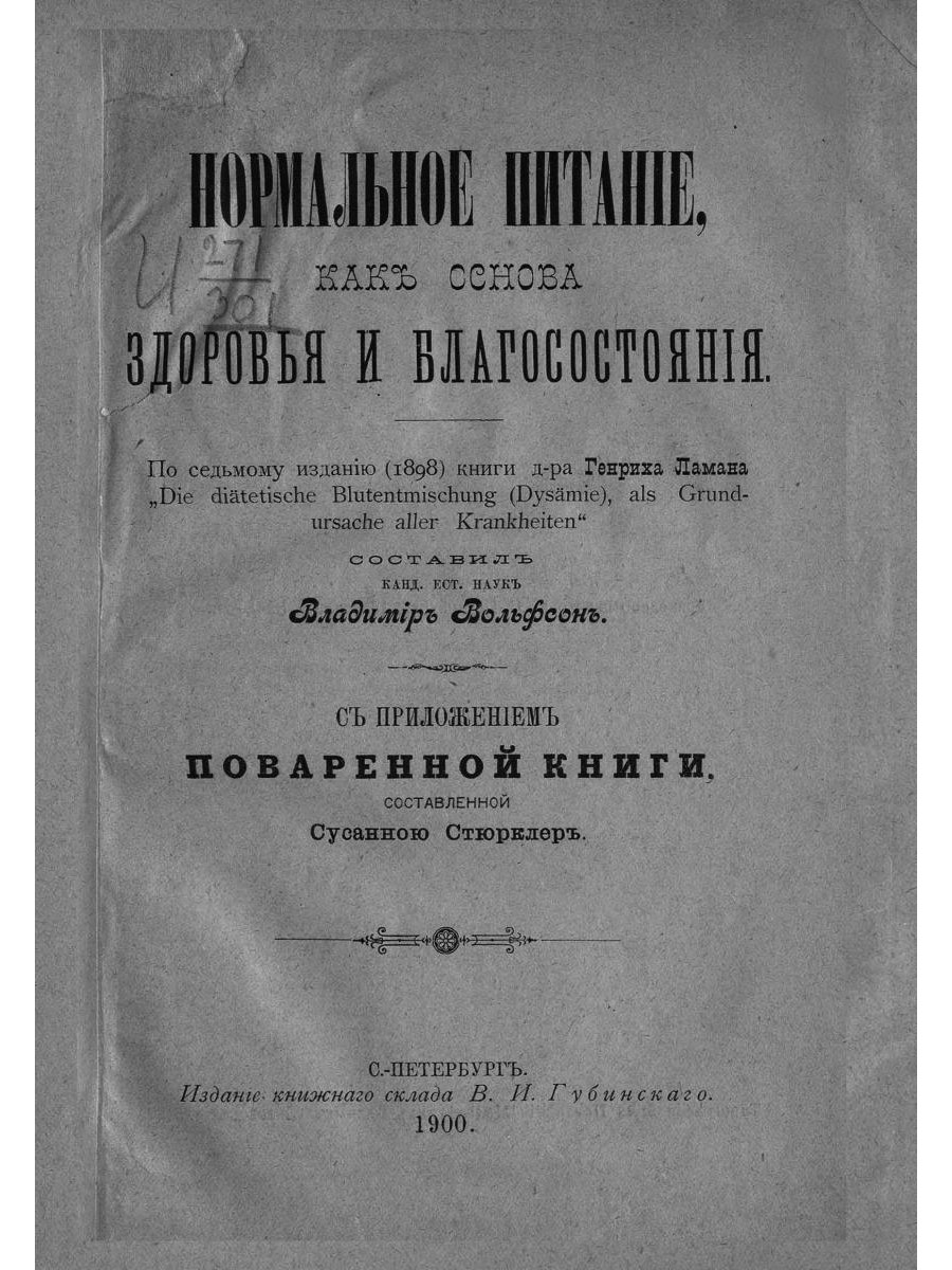 Аннотация: Нормальное питание, как основа здоровья и благосостояния (репринтное изд.)
