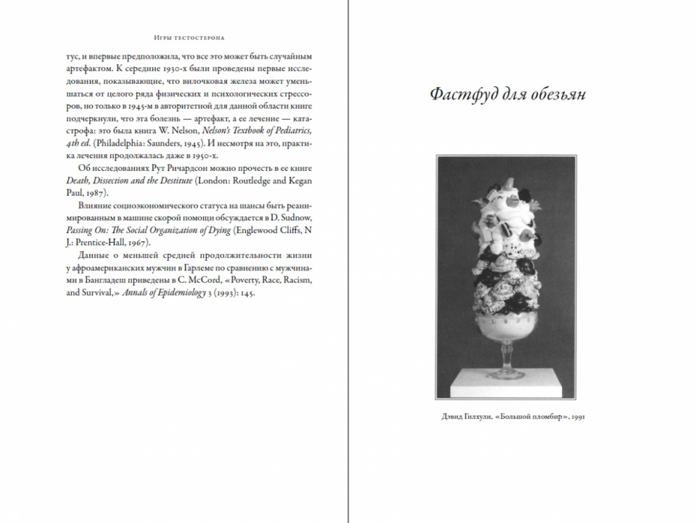 «...изучив образец его крови в лаборатории, мы обнаружили, что у Гоббса был один из самых высоких уровней кортизола в стае и предельно низкий уровень лимфоцитов, меньше четверти среднего по группе (у Руто и Толстяка, которые отсиживались в сторонке, лимфоцитов было в три и в шесть раз больше, чем у Гоббса). Молодой павиан сам переживал сильнейший стресс, даже больший, чем самки, на которых он нападал, - и уж точно больший, чем обычные робкие самцы-переселенцы, которых я изучал. Другими словами, круглые сутки быть подонком не так уж просто - пара месяцев в таком режиме будет дорого стоить организму».