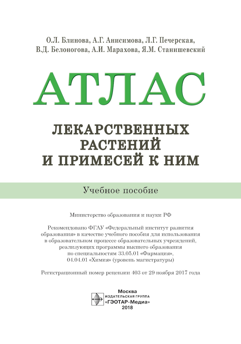 Аннотация: Атлас лекарственных растений и примесей к ним: Учебное пособие