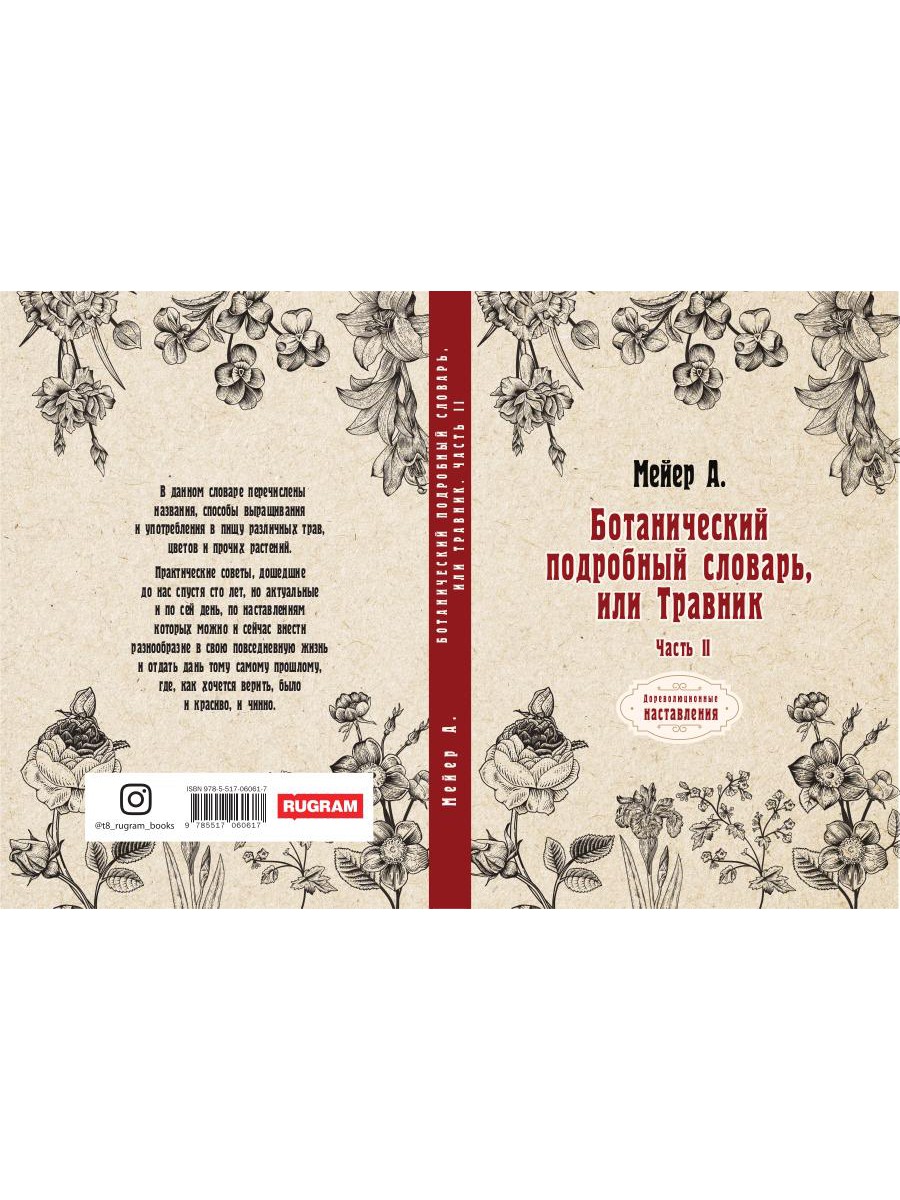 В данном словаре перечислены названия, способы выращивания и употребления в пищу различных трав, цветов и прочих растений. Практические советы, дошедшие до нас спустя сто лет, но актуальные и по сей день, по наставлениям которых можно и сейчас внести разнообразие в свою повседневную жизнь и отдать дань тому самому прошлому, где, как хочется верить, было и красиво, и чинно.| Издательство | Т8 RUGRAM |