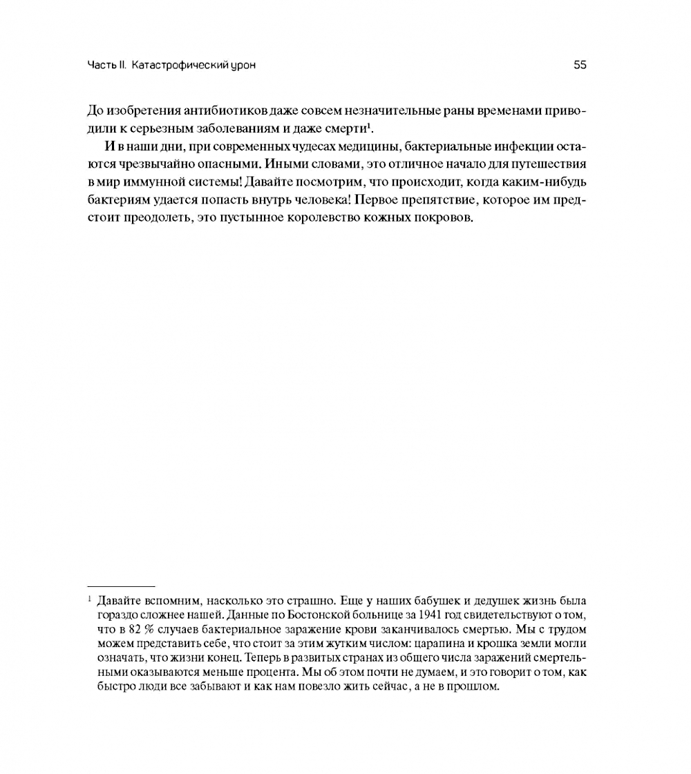 Иммунная система уступает по сложности лишь человеческому мозгу. Это одна из старейших и самых важных систем нашего организма, без нее мы бы умерли в течение нескольких дней! Так как же она работает? Ответ на этот вопрос можно найти в учебнике по иммунологии. Однако, начав читать, вы, скорее всего, быстро закроете его и положите на полку, позабыв как страшный сон. В этой прекрасно иллюстрированной книге автор постарался сделать сложную информацию доступной и увлекательной. После прочтения вы навряд ли станете экспертом в иммунологии, но зато точно будете знать об иммунитете намного больше. Вы откроете для себя новый мир внутри своего организма. Там бушует постоянная битва ошеломляющего масштаба, с ее вторжениями, стратегиями, поражениями и благородным самопожертвованием. На самом деле, за то время, что вы читали, ваша иммунная система, вероятно, идентифицировала и уничтожила раковую клетку, которая начала расти в вашем теле.| Издательство | Портал |