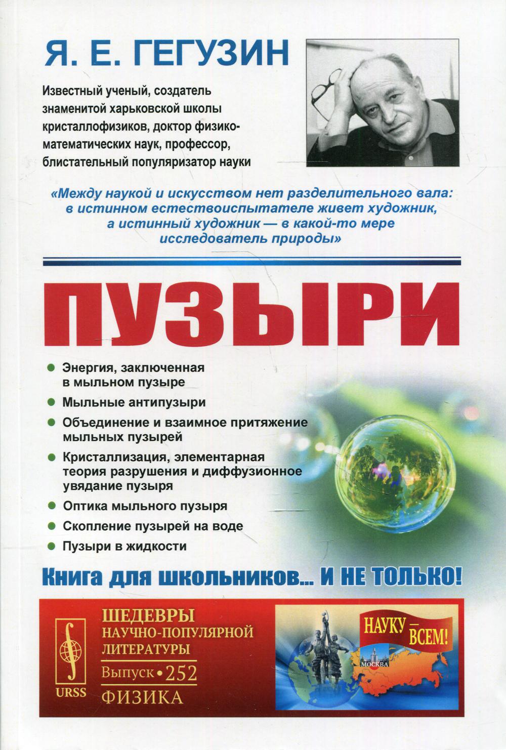 Труд известного ученого-физика Якова Евсеевича Гегузина «Пузыри» - это научно-популярный рассказ о некоторых физических свойствах мыльных пузырей и пузырей в жидкости, а также о тех физических явлениях, в которых пузыри принимают участие. В книге рассказано о взаимодействии между мыльными пузырями, о возможности их использовать для создания модели реального кристалла, об участии пузырей в «дыхании» воды, о том, какую роль они играют во многих технологических процессах и в создании новых методов физических исследований. Издание предназначено для школьников старших классов, студентов, преподавателей и всех, кто интересуется современным естествознанием.| Издательство | ЛЕНАНД |