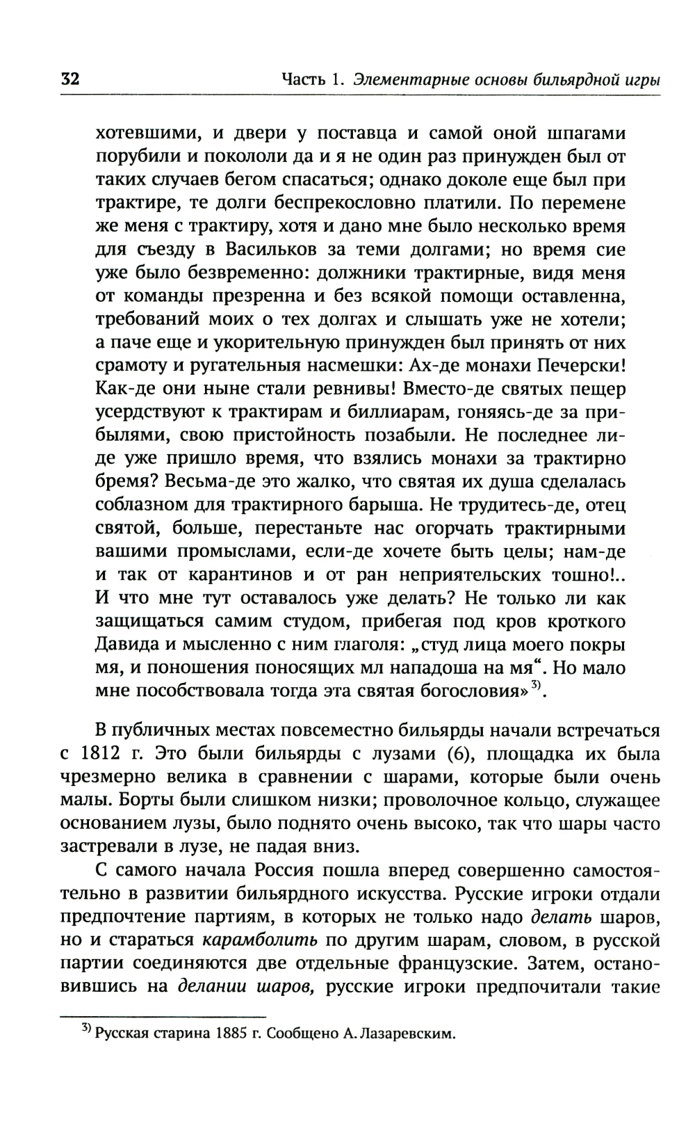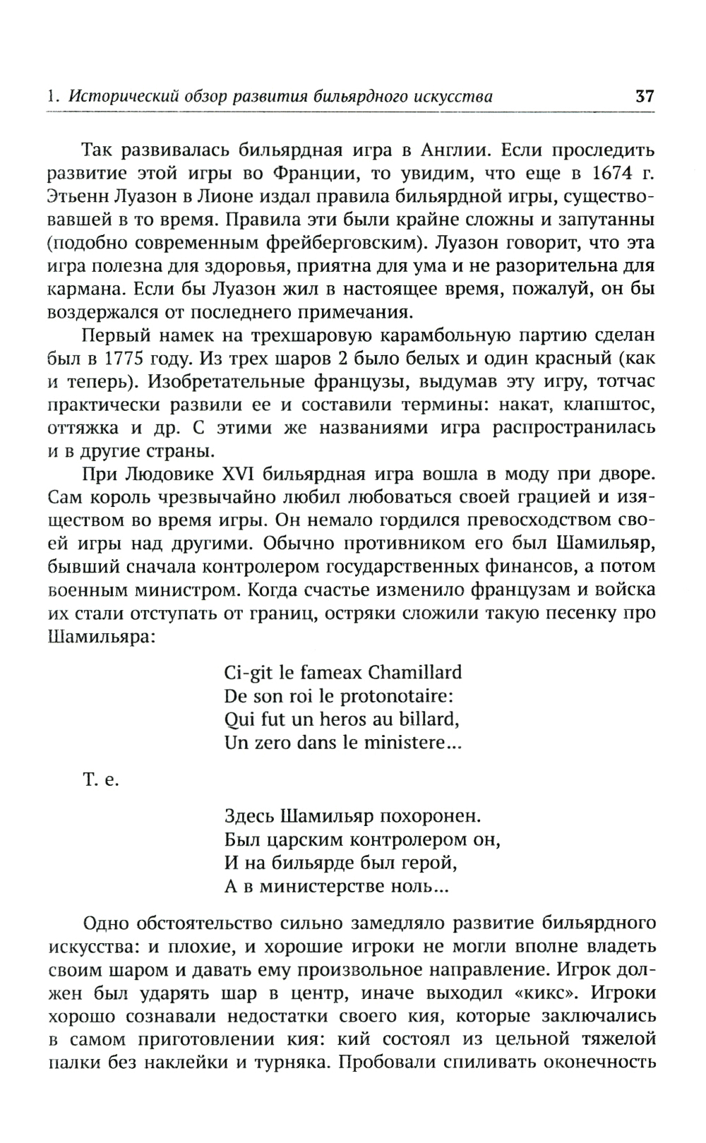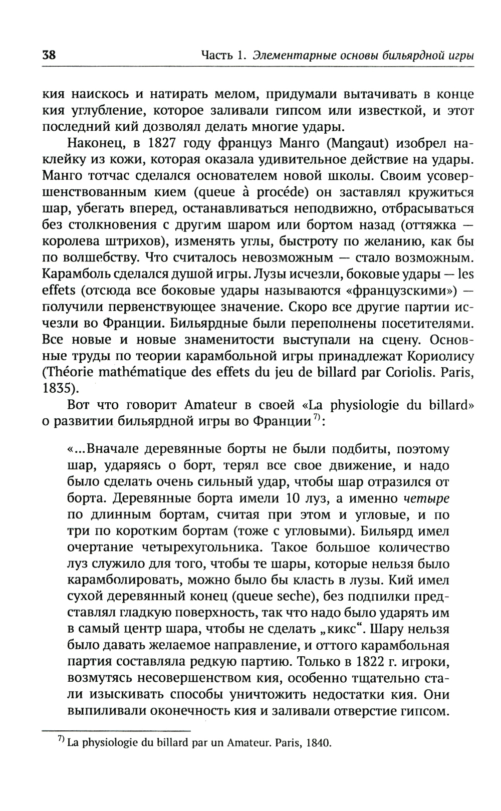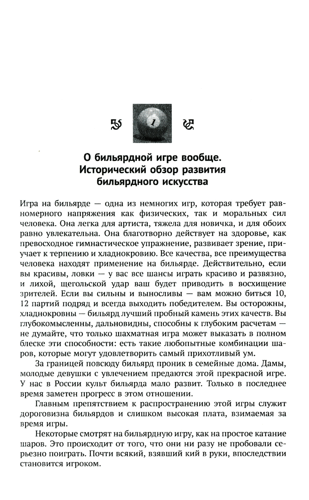 Перед читателями - выдающийся труд, ставший классическим учебником по бильярдному спорту и, в более широком смысле, искусству игры в бильярд. И хотя он был создан во второй половине XIX века, по широте охвата материала, яркому языку и строгому стилю изложения он и в наше время может считаться непревзойденным руководством. Автор книги, писатель и игрок в бильярд Анатолий Иванович Леман шаг за шагом, страница за страницей раскрывает технику бильярдной игры, объясняет удар за ударом, приводит массу примеров, не затрудняясь при объяснении самых сложных положений. Большой интерес для знатоков и любителей представляют составленные автором бильярдные задачи с приложенными к ним решениями. Книга рекомендуется всем интересующимся игрой в бильярд, в том числе профессионалам бильярдного спорта и тем, кто только начинает свой путь в этой замечательной игре.| Издательство | ЛЕНАНД |