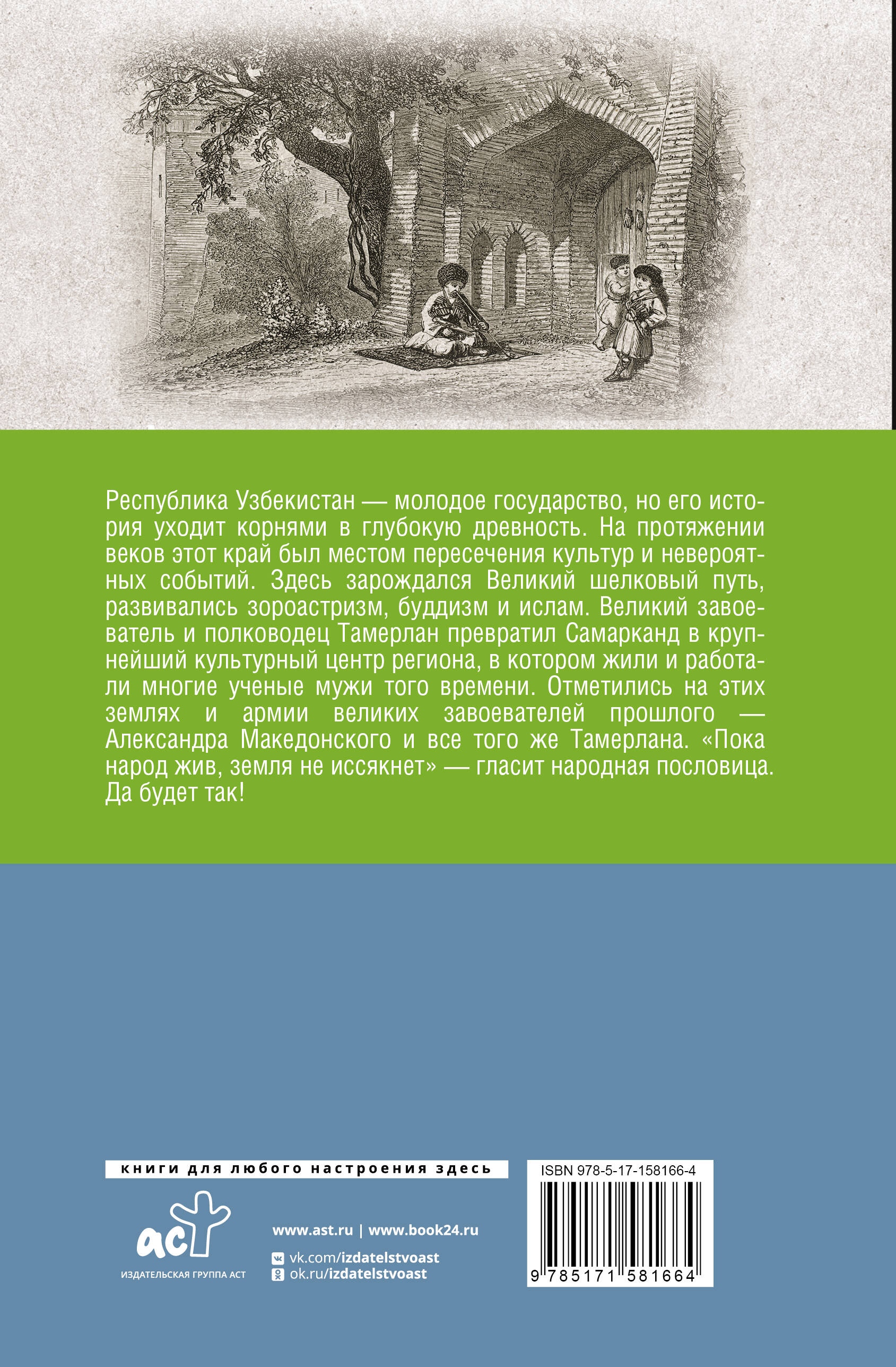 Республика Узбекистан - молодое государство, но его история уходит корнями в глубокую древность. На протяжении веков этот край был местом пересечения культур и невероятных событий. Здесь проходил Великий шелковый путь, развивались зороастризм, буддизм и ислам. Тимур превратил Самарканд в крупнейший культурный центр региона, где жили, работали и трудились многие ученые мужи того времени. Отметились на этих землях и армии великих завоевателей прошлого - Александр Македонский и Тамерлан. "Пока народ жив, земля не иссякнет" - гласит народная пословица. Да будет так!.| Издательство | Издательство "АСТ" |