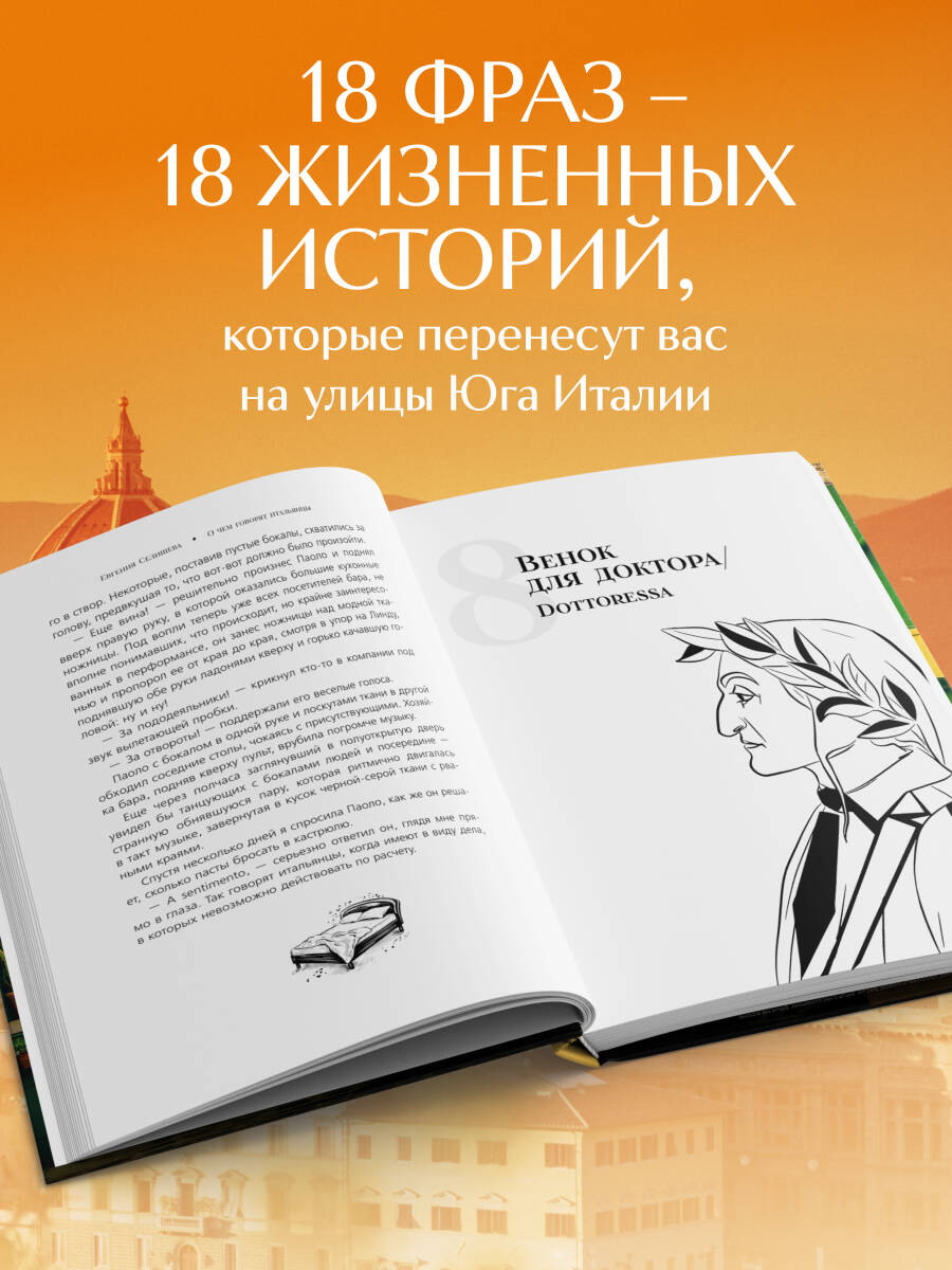 Реальные истории со вкусом итальянского солнца! Юг Италии - это абсолютно другой мир, который сильно отличается от севера страны своей культурой, традициями и образом жизни. Люди, живущие здесь, очень душевные и гостеприимные, хоть и несколько темпераментные. Но все же они итальянцы! И если вы когда-нибудь думали о том, как научиться их понимать, то автор Евгения Селищева, которая живет здесь с 2006 года, нашла один верный способ - и это язык! Ведь именно он является наиболее полным отражением культуры любого народа. Кого итальянцы называют «бедными христосами», что они описывают словом аффарэ, как работает итальянское сарафанное радио и зачем при этом нужно «сеять голос»? Погрузитесь в колорит местной культуры вместе с невымышленными рассказами о жителях типичного южного городка! И найдите ответы на интересующие вас вопросы про этих темпераментных итальянцев!| Издательство | ООО "Издательство "Эксмо" |
