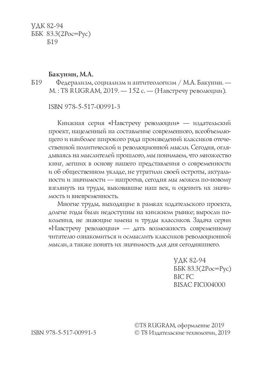 Аннотация: Федерализм, социализм и антитеологизм