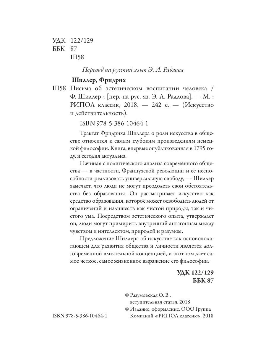 Аннотация: Письма об эстетическом воспитании человека