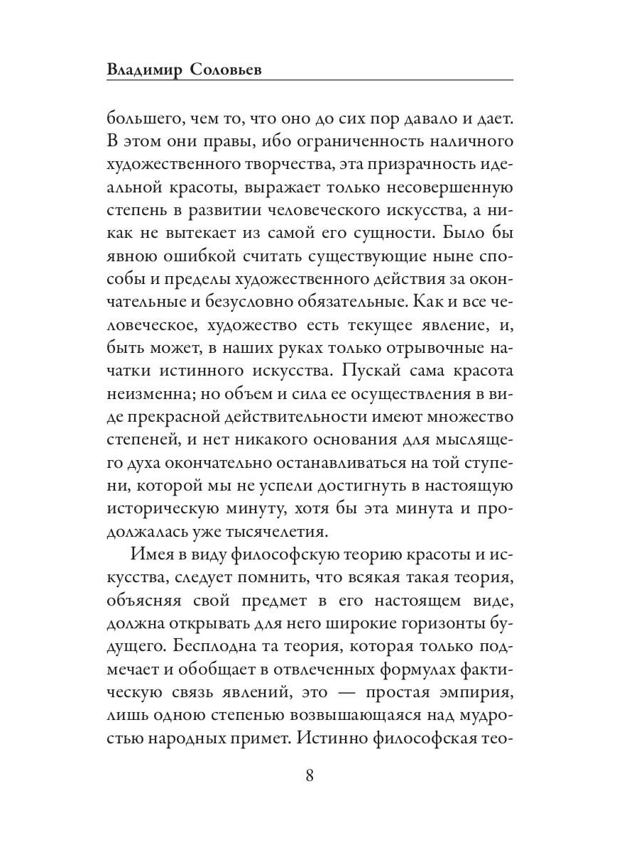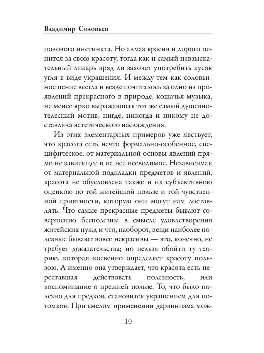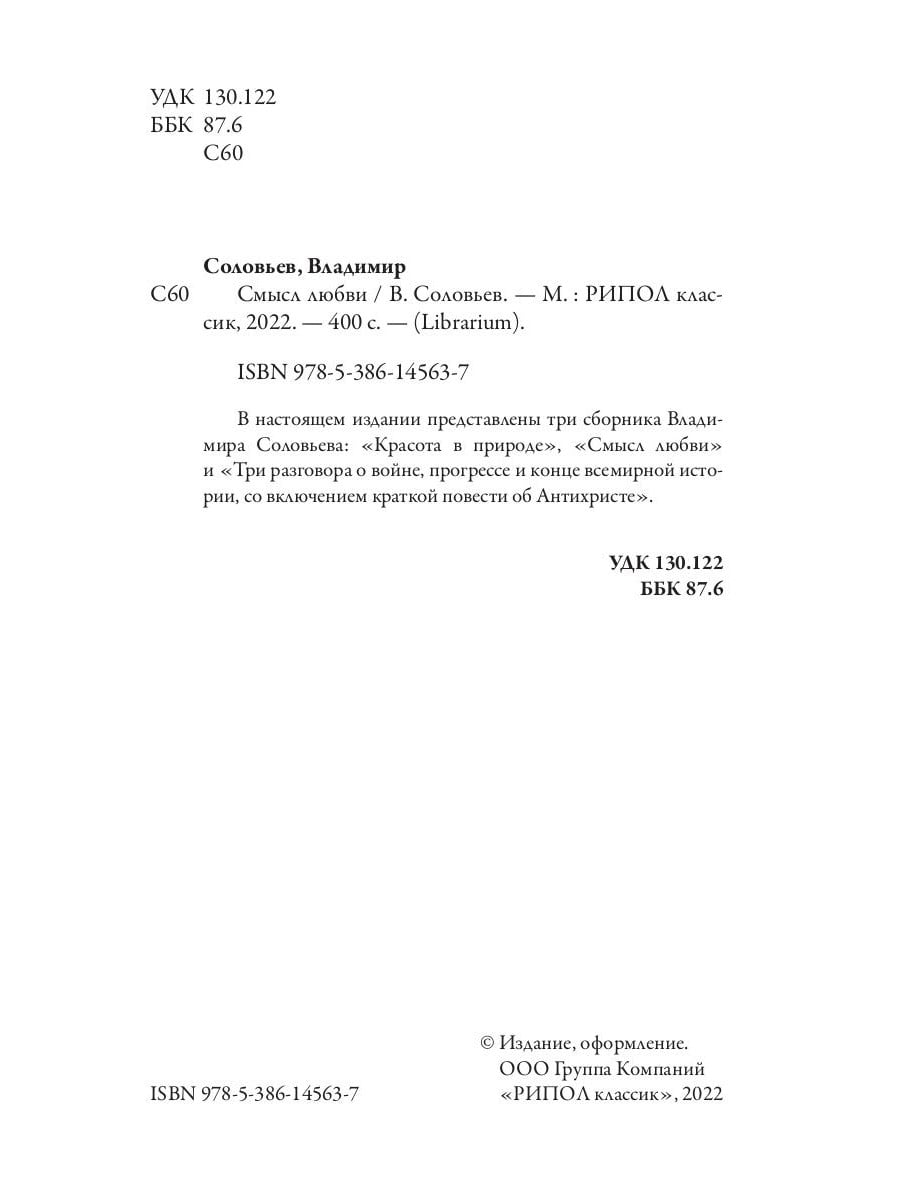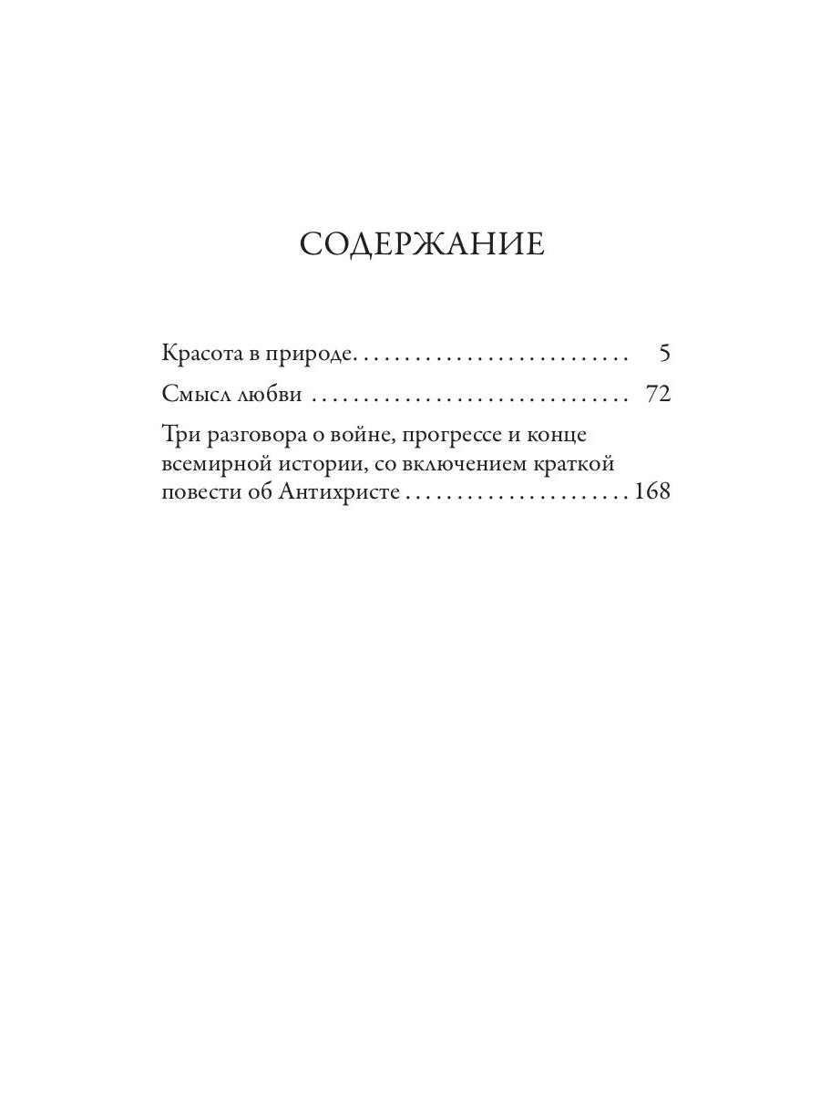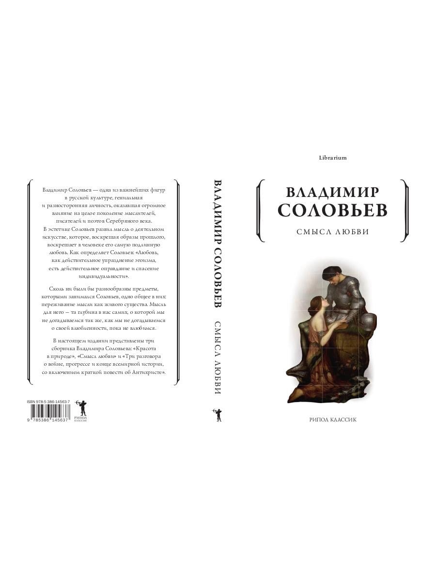 Владимир Соловьев - одна из важнейших фигур в русской культуре, гениальная и разносторонняя личность, оказавшая огромное влияние на целое поколение мыслителей, писателей и поэтов Серебряного века. В эстетике Соловьев развил мысль о деятельном искусстве, которое, воскрешая образы прошлого, воскрешает в человеке его самую подлинную любовь. Как определяет Соловьев: «Любовь, как действительное упразднение эгоизма, есть действительное оправдание и спасение индивидуальности». Сколь ни были бы разнообразны предметы, которыми занимался Соловьев, одно общее в них: переживание мысли как живого существа. Мысль для него - та глубина в нас самих, о которой мы не догадываемся так же, как мы не догадываемся о своей влюбленности, пока не влюбимся. В настоящем издании представлены три сборника Владимира Соловьева: «Красота в природе», «Смысл любви» и «Три разговора о войне, прогрессе и конце всемирной истории, со включением краткой повести об Антихристе».| Издательство | Рипол Классик |