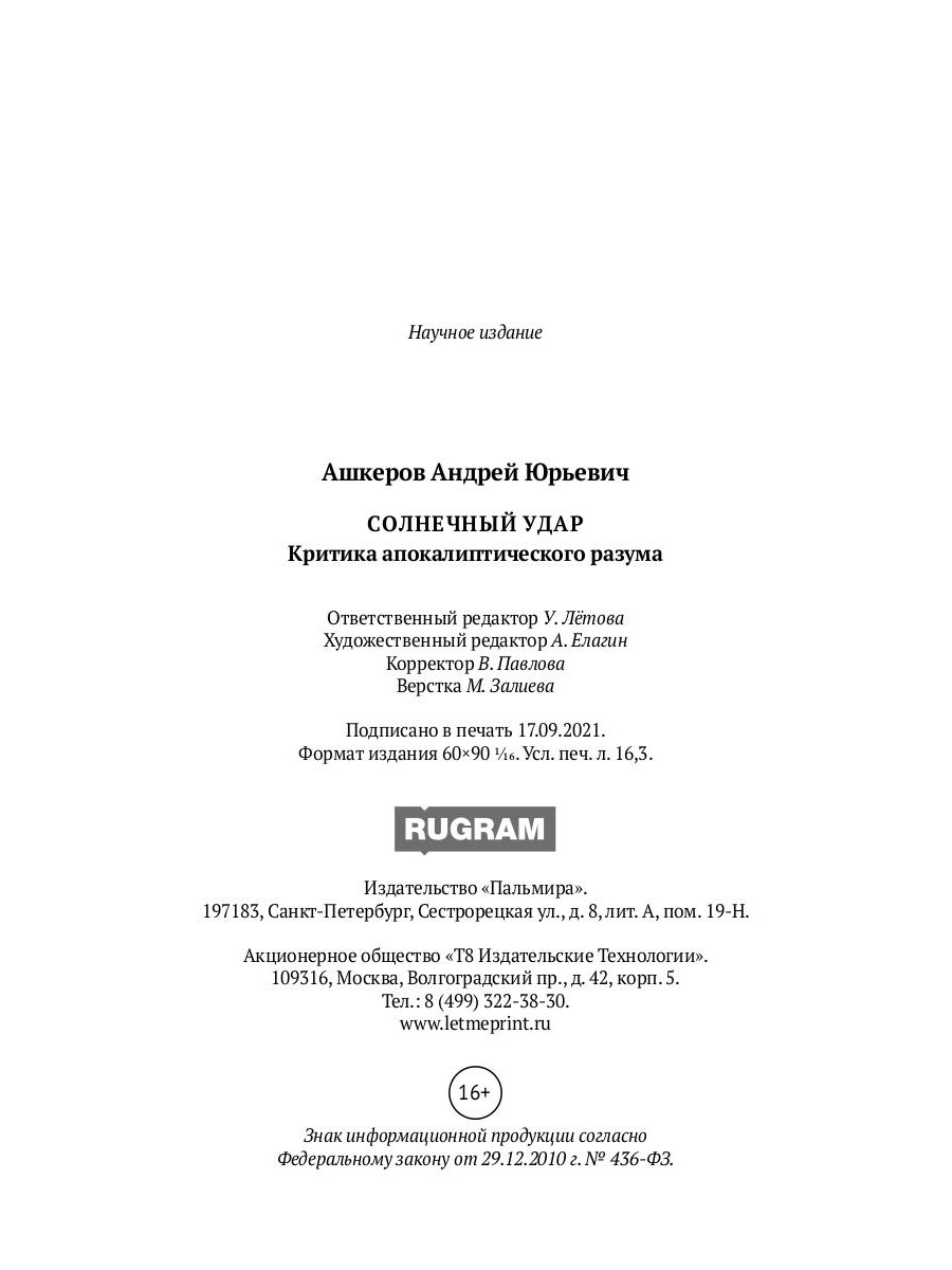 Аннотация: Солнечный удар. Критика апокалиптичекого разума