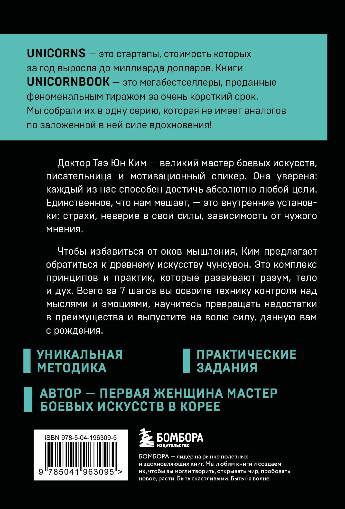 Она нарушила тысячелетнюю корейскую традицию, запрещавшую женщинам заниматься боевыми искусствами. Таэ Юн Ким стала не только первоклассным бойцом, но и открыла свою школу единоборств. Ким уверена: каждый из нас - не важно, мужчина или женщина, американец, русский или кореец - способен достичь абсолютно любой цели. Единственное, что нам мешает - это внутренние установки: страхи, неверие в свои силы, зависимость от чужого мнения, неспособность взять себя в руки. Чтобы избавиться от оков мышления, Ким предлагает обратиться к древнему искусству чунсувон. Это комплекс принципов и практик, которые развивают разум, тело и дух. Всего за 7 шагов вы освоите технику контроля над мыслями и эмоциями, научитесь превращать недостатки в преимущества и выпустите на волю силу, данную вам с рождения.| Издательство | ООО "Издательство "Эксмо" |