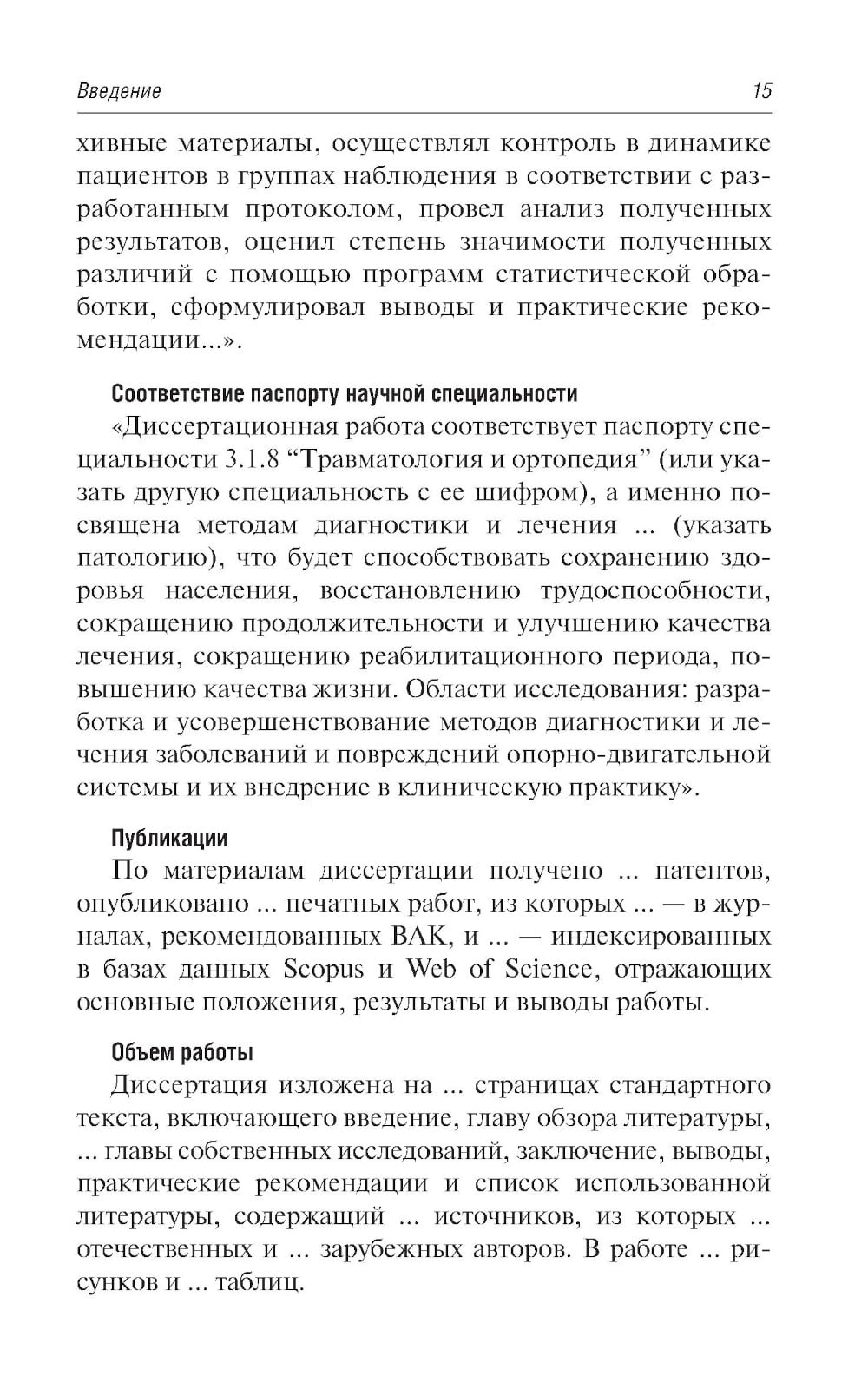 В издании не затрагивается процесс выполнения научной работы, а описано лишь ее оформление в виде диссертации, автореферата, доклада или презентации, а также даны советы по стратегии поведения диссертанта во время защиты. Рекомендации основаны на авторском опыте руководства диссертационными исследованиями и работы в диссертационных советах. Они рассчитаны прежде всего на оформление кандидатской диссертации, посвященной клиническому исследованию (на примере травматологии и ортопедии), однако могут быть полезны и для других работ (экспериментальных, ретроспективных), в том числе на соискание ученой степени доктора наук или выполненных в других областях медицины. Во втором издании текст приведен в соответствие с актуальными нормативными документами.| Издательство | ГЭОТАР-Медиа |