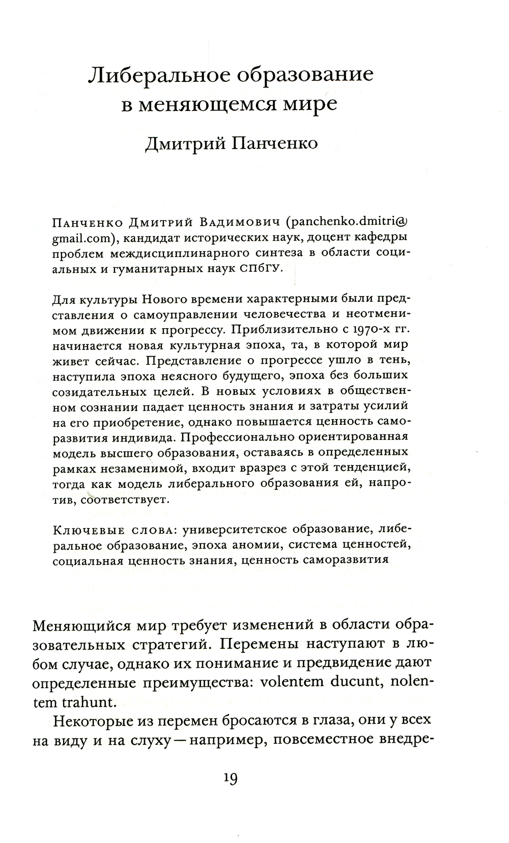 Аннотация: Образовательная модель свободных искусств и наук: мировой и российский опыт