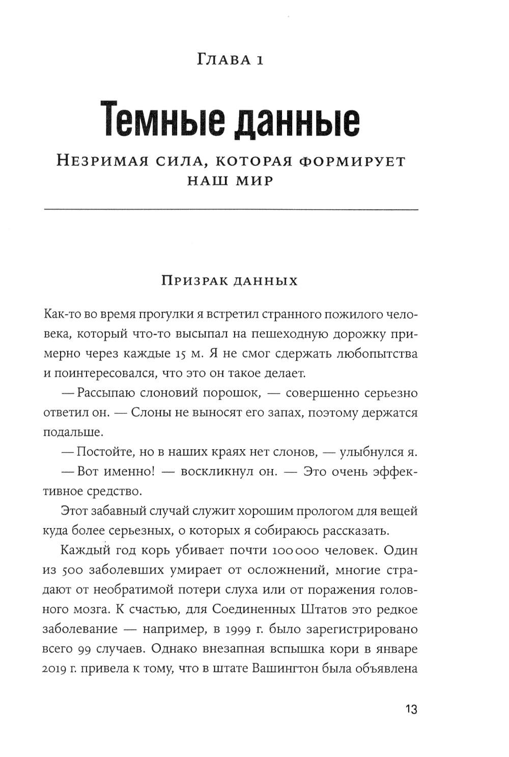 Человечество научилось собирать, обрабатывать и использовать в науке, бизнесе и повседневной жизни огромные массивы данных. Но что делать с данными, которых у нас нет? Допустимо ли игнорировать то, чего мы не замечаем? Британский статистик Дэвид Хэнд считает, что это по меньшей мере недальновидно, а порой - крайне опасно. В своей книге он выделяет 15 влияющих на наши решения и действия видов данных, которые остаются в тени. Например, речь идет об учете сигналов бедствия, которые могли бы подать жители бедных районов, если бы у них были смартфоны, результатах медицинского исследования, которые намеренно утаили или случайно исказили, или данных, ставших «темными» из-за плохого набора критериев для включения в выборку. Хэнд также рассказывает о том, какие меры могут сгладить эффект «темных данных» и как их можно обратить себе на пользу. Книга будет интересна широкому кругу читателей, интересующихся дата-сайенс, программированием и статистикой.| Издательство | Альпина Паблишер |