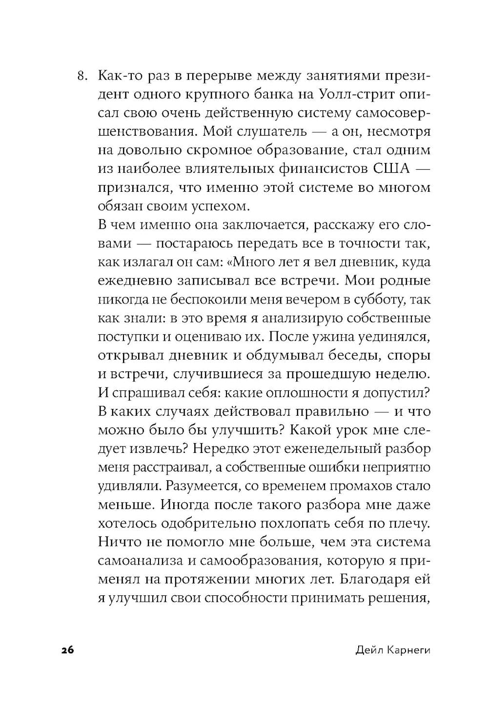 Работа Карнеги не зря стала культовой - в хорошем смысле: пока люди продолжают общаться, подобные книги не перестанут быть актуальными. Хотя применимость некоторых принципов в повседневной жизни (и в российских бытовых реалиях) выглядит далеко не стопроцентной, в целом Карнеги всё изложил чётко и по делу. Совершенно бесспорные принципы эффективного общения - например, что надо поменьше критиковать и ставить себя на место человека, оценивая его поступки или давая ему совет, - основаны на базовых гуманистических представлениях, таких как сострадание, уважение, забота о себе и близких. Что касается содержимого отдельных глав: читатель, который не занят в сфере продаж и т.п., возможно, хотел бы больше примеров использования этих принципов в семейном общении. Кажется, что некоторые подходы, сформулированные в виде отдельных принципов, пересекаются с другими, - а значит, более логичным было бы объединить их. Впрочем, всё объясняется очень доходчиво и убедительно. Подобные знания нужно в обязательном порядке давать в старших классах средней школы, а также на курсах для молодых родителей; хотя профессиональные психологи относятся к этой книге с некоторой долей скепсиса, рекомендации, в ней изложенные, очень практичны и послужат хорошей базой для всех, кто хочет освоить «бытовую психологию».| Издательство | Альпина Паблишер |