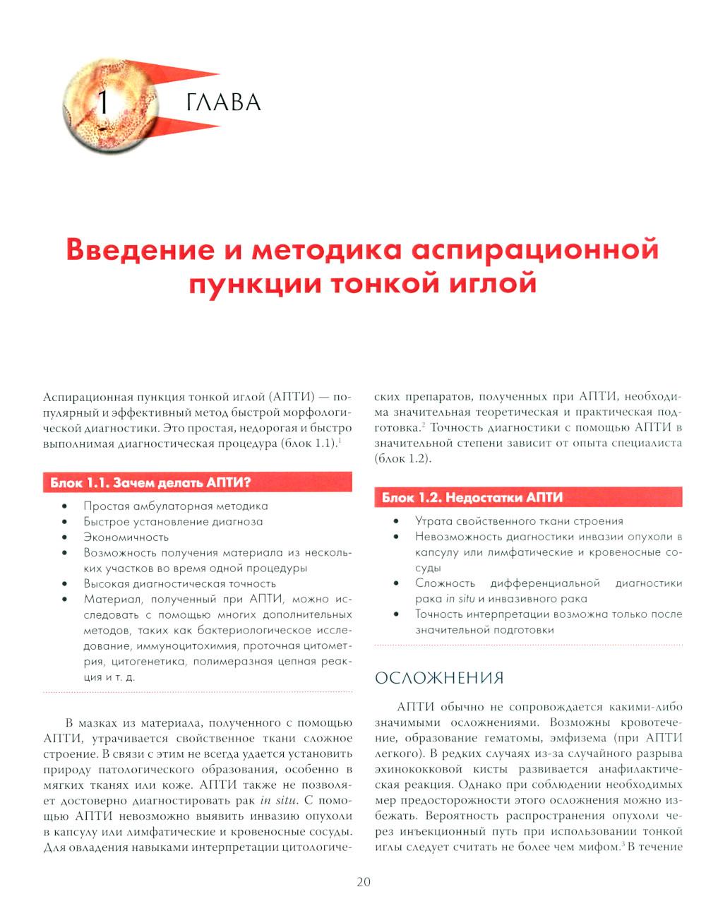 Книга представляет собой руководство-атлас по аспирационной пункции тонкой иглой. Она содержит 13 глав, каждая из которых посвящена цитологической диагностике заболеваний, характерных для определенной локализации. В каждой из глав приведены диагностические критерии отдельных патологических процессов, рекомендации по составлению цитологического заключения, также содержится раздел «диагностические проблемы». Отдельная глава посвящена общим принципам и методике исследования. Для цитологов, патоморфологов, врачей-лаборантов.| Издательство | Практическая медицина |