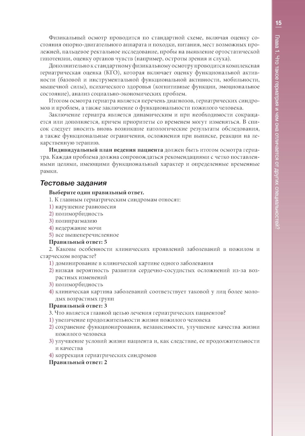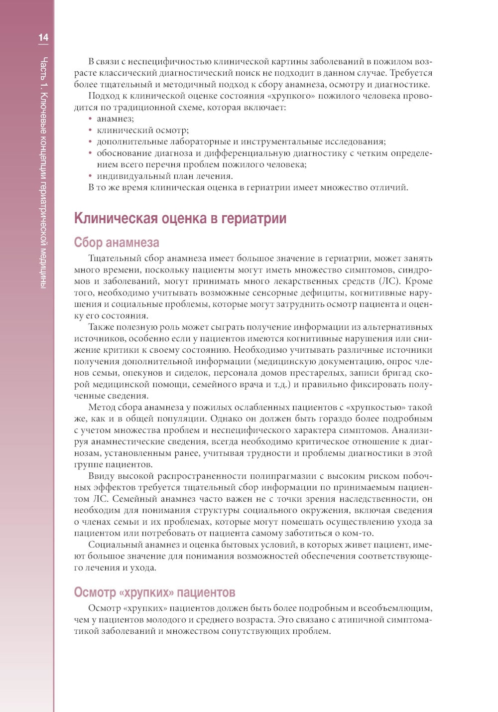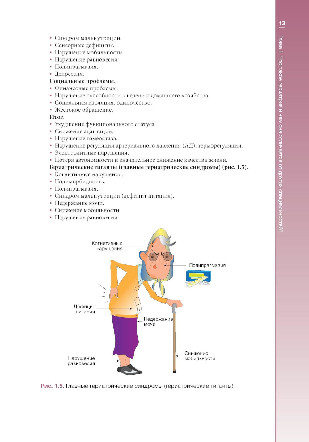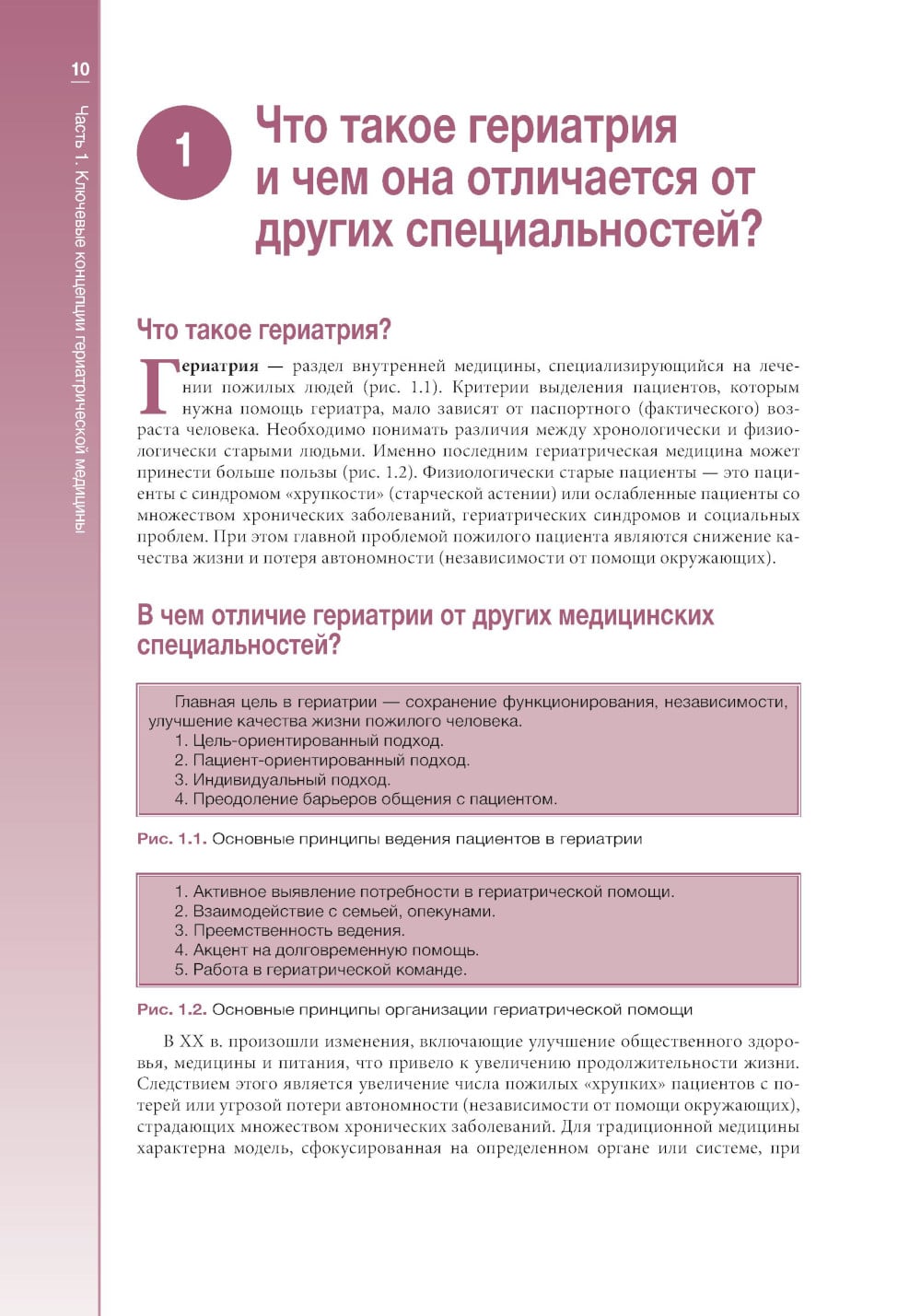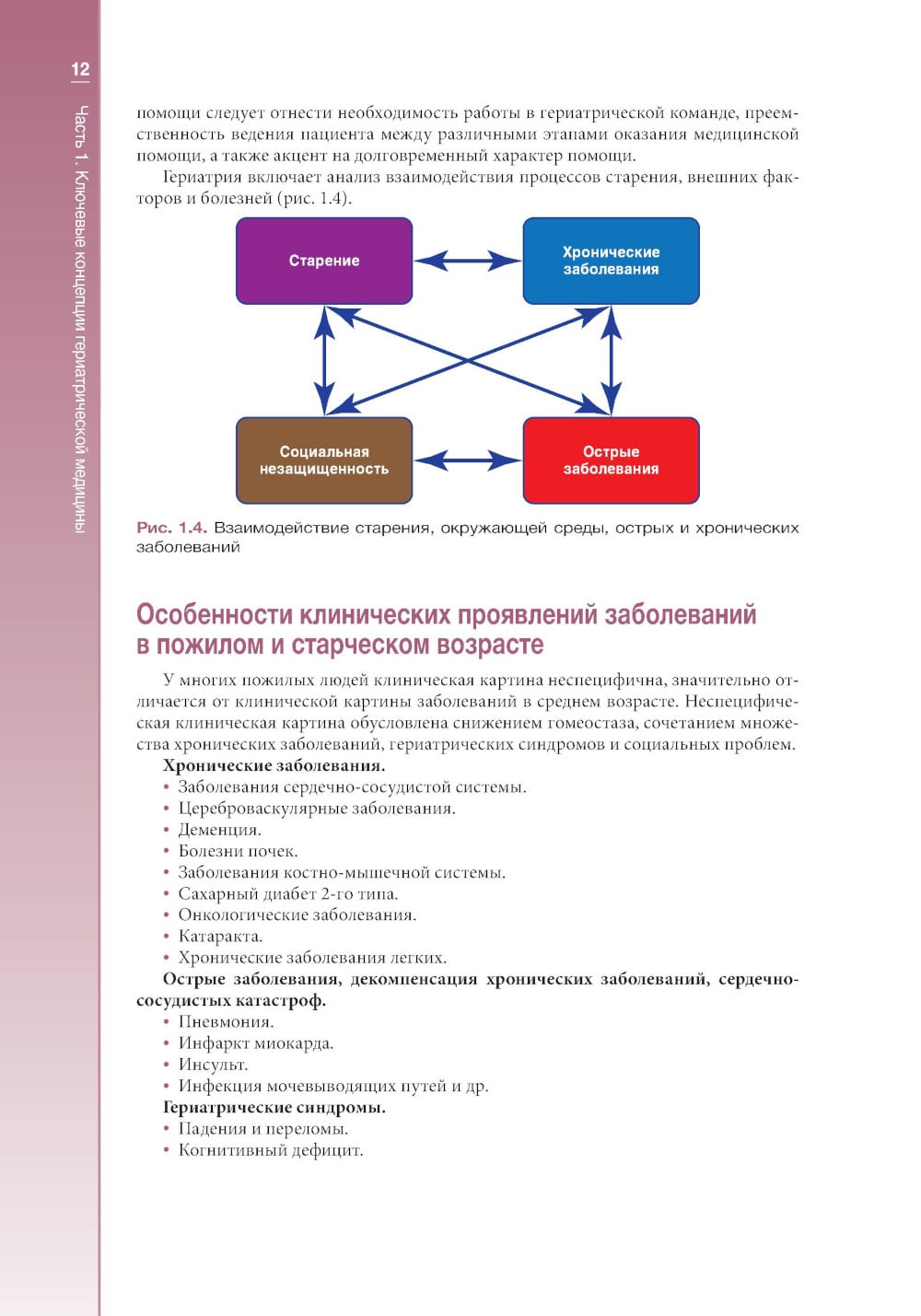 Настоящее издание представляет собой краткое, но информативное клиническое руководство, позволяющее за короткое время овладеть основными понятиями и принципами гериатрической медицины. В руководстве отражены современные теории старения, вопросы диагностики и ведения основных гериатрических синдромов, приведена информация по организации гериатрической службы. Каждая глава руководства содержит большое количество иллюстраций, схем, таблиц, а также тестовые задания для лучшего усвоения изложенного материала и его эффективного применения в практической деятельности. Руководство предназначено врачам всех специальностей, а также может быть рекомендовано в качестве учебного пособия студентам, обучающимся по специальности «Лечебное дело», ординаторам, среднему медицинскому персоналу.| Издательство | ГЭОТАР-Медиа |