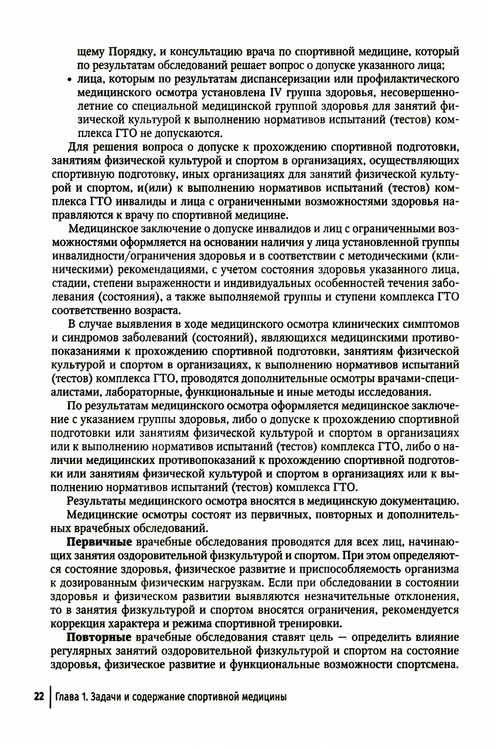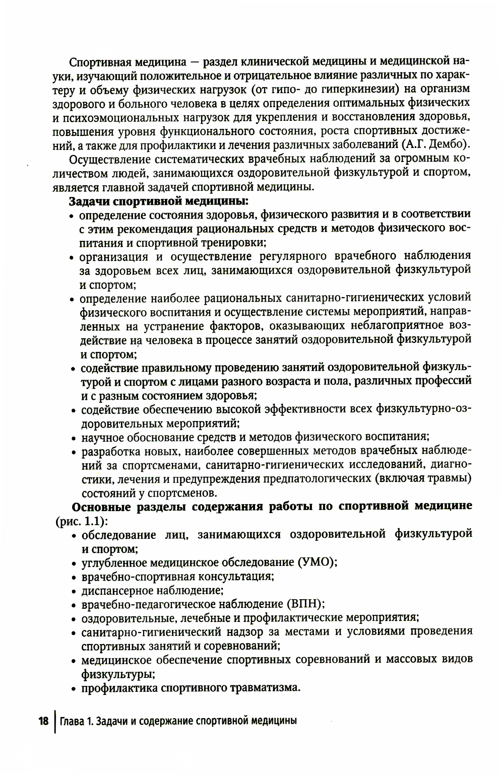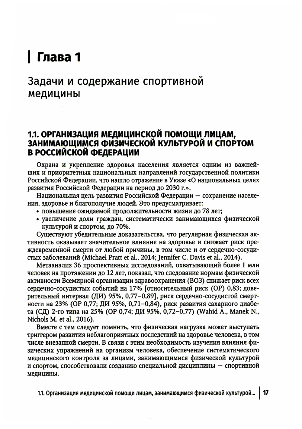 Третье издание данного руководства включает новые разделы, в которых рассматриваются основные задачи и должностные обязанности спортивного врача, подробно изложены нормативные документы, касающиеся дисциплины «Спортивная медицина», с современных позиций освещены принципы организации и содержание спортивной медицины, включены вопросы отбора и ранней специализации спортсменов. Большое внимание уделено сердечно-сосудистой системе, органам дыхания, желудочно-кишечному тракту, мочевыделительной системе и другим заболеваниям у спортсменов. Описаны Основы спортивной тренировки, методы ее проведения, рациональный подбор физических упражнений на этапах спортивной тренировки, дозировка физических нагрузок, а также планирование и контроль за индивидуальными подходами к тренировочному процессу. В книге приведен научно-практический опыт, приобретенный авторским коллективом за время многолетней работы с людьми, занимающимися оздоровительной физической культурой и спортом, а также вузовский опыт преподавания спортивной медицины, а большое количество иллюстраций поможет лучше усвоить представленный материал. Издание предназначено специалистам по спортивной медицине, работающим в сборных командах страны, спортивных клубах, врачебно-физкультурных диспансерах, центрах спортивной медицины, а также травматологам-ортопедам, неврологам, терапевтам, физиотерапевтам, мануальным терапевтам, клиническим ординаторам, аспирантам, студентам медицинских и педагогических вузов, слушателям факультетов постдипломного образования.| Издательство | ГЭОТАР-Медиа |