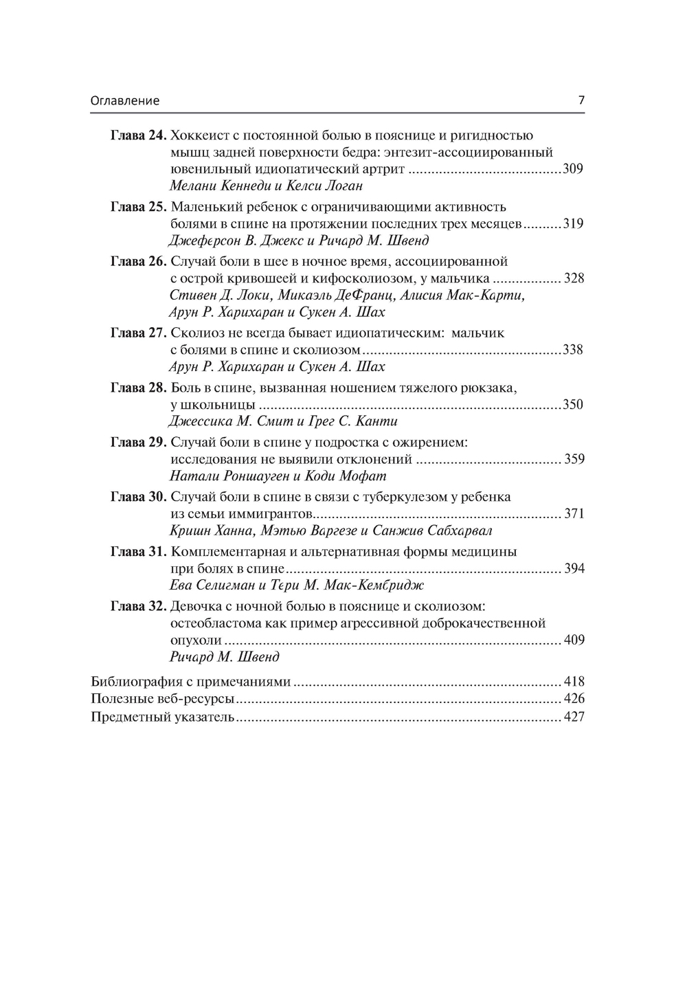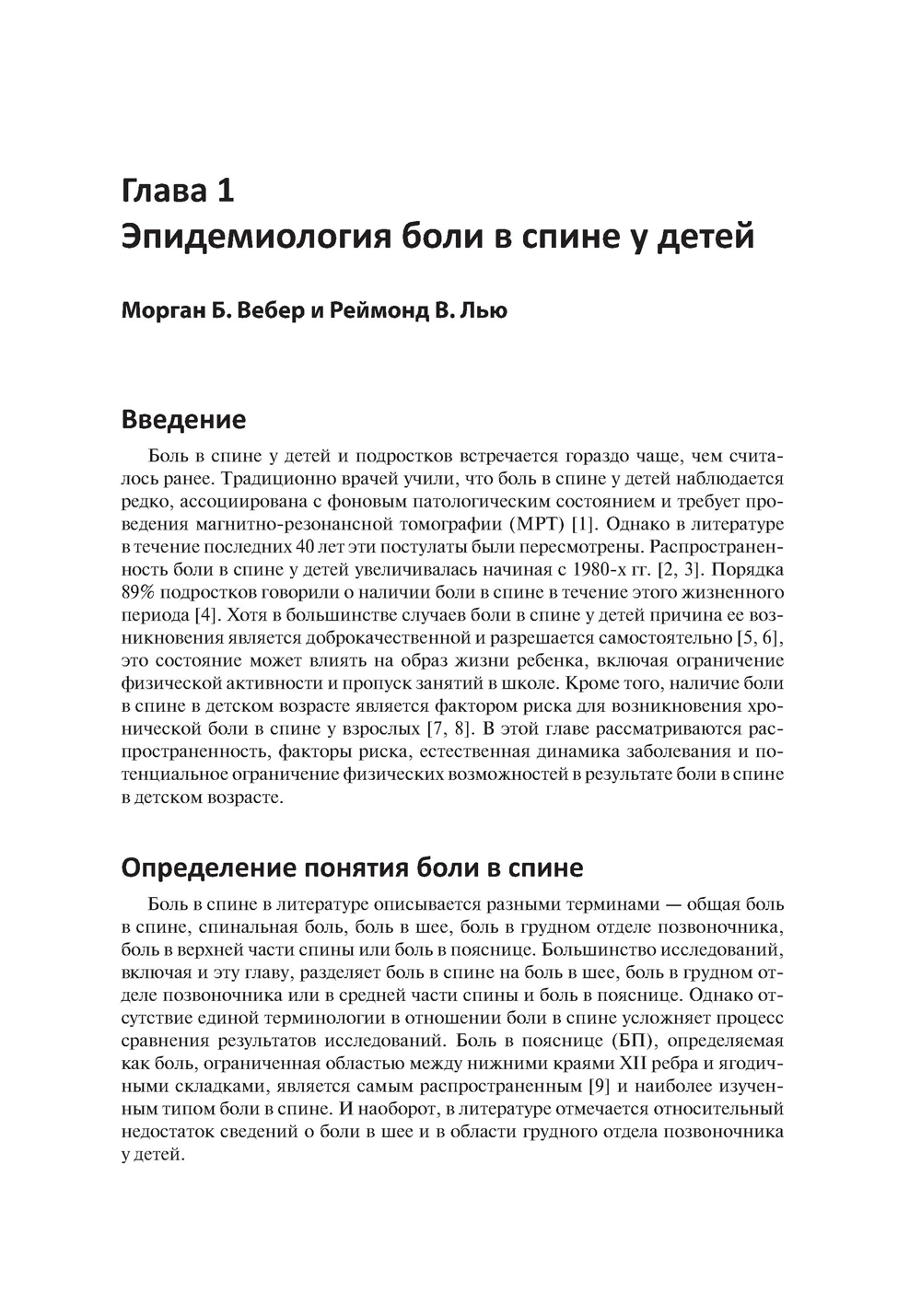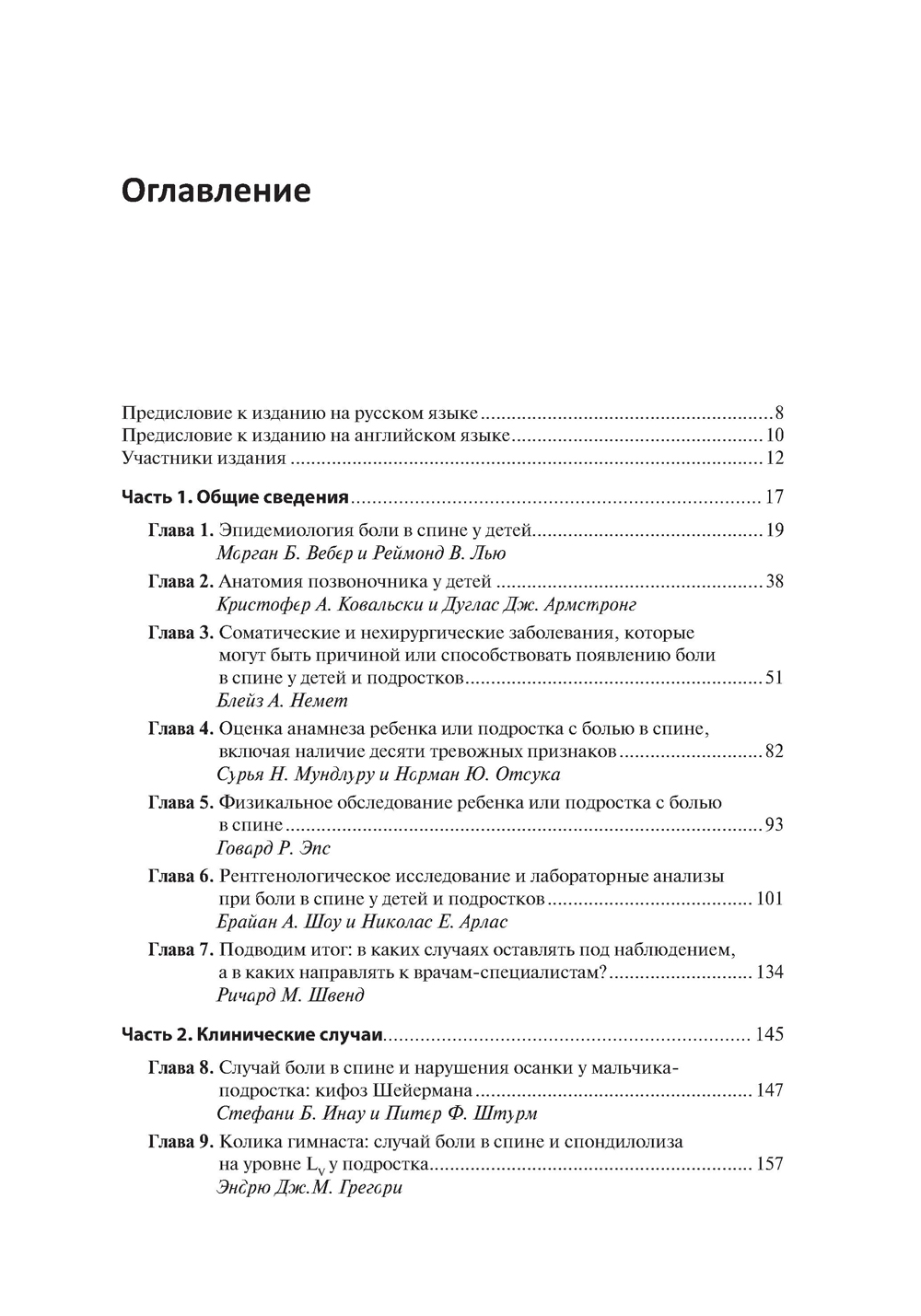 Боль в спине - наиболее распространенное состояние опорно-двигательного аппарата, на которое пациенты жалуются врачам в отделении первичной и неотложной медицинской помощи. При этом лишь немногие врачи первичной помощи получили образование и подготовку по вопросам надлежащего обследования ребенка с болью в спине. Это руководство призвано восполнить пробелы в знаниях врачей и в конечном итоге улучшить лечение и последующий уход за пациентами. Издание состоит из двух основных разделов. Первый раздел содержит семь вводных глав по эпидемиологии, анатомии позвоночника, визуализирующим исследованиям, клиническим аспектам, общим вопросам анамнеза и физикальному обследованию ребенка с болью в спине. Во втором разделе представлен обзор распространенных проблем, связанных с болью в спине, и даны инструкции, как лучше провести обследование педиатрического пациента. Выделены классические результаты анамнеза и обследования, которые могут привести к целенаправленному дифференциальному диагнозу, успешному лечению и направлению пациента к смежным специалистам. Указания на настораживающие признаки в истории болезни и физическом состоянии помогают врачам избежать диагностических ошибок. Завершается раздел главой, которая позволит врачам собрать всю ценную информацию воедино. Руководство предназначено педиатрам, а также неврологам, ортопедам, врачам мануальной терапии и всем тем, кто занимается проблемой боли в спине.| Издательство | ГЭОТАР-Медиа |