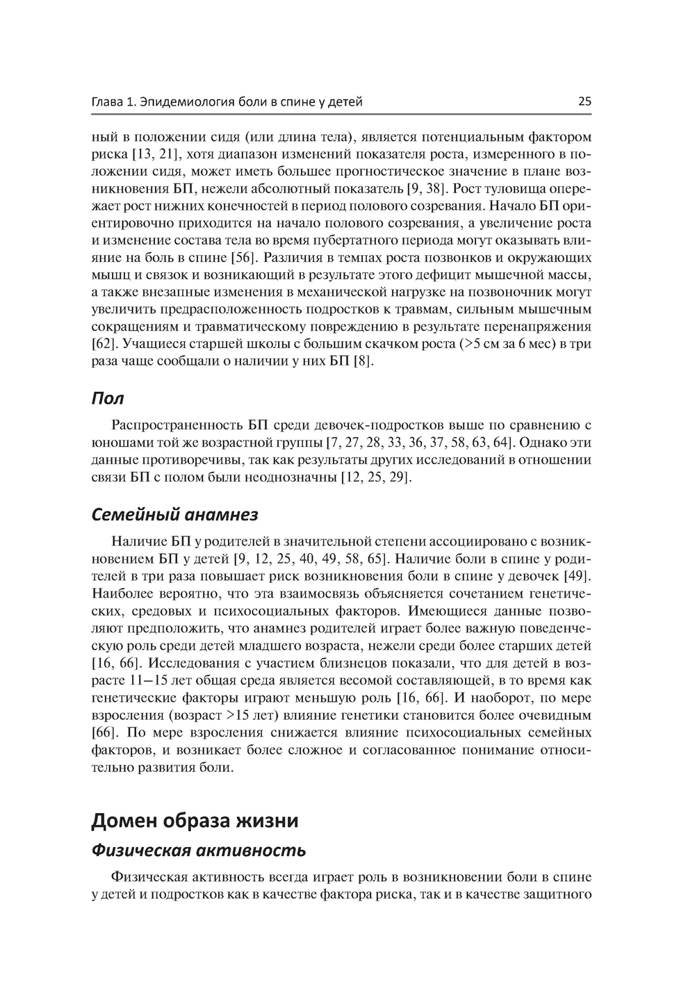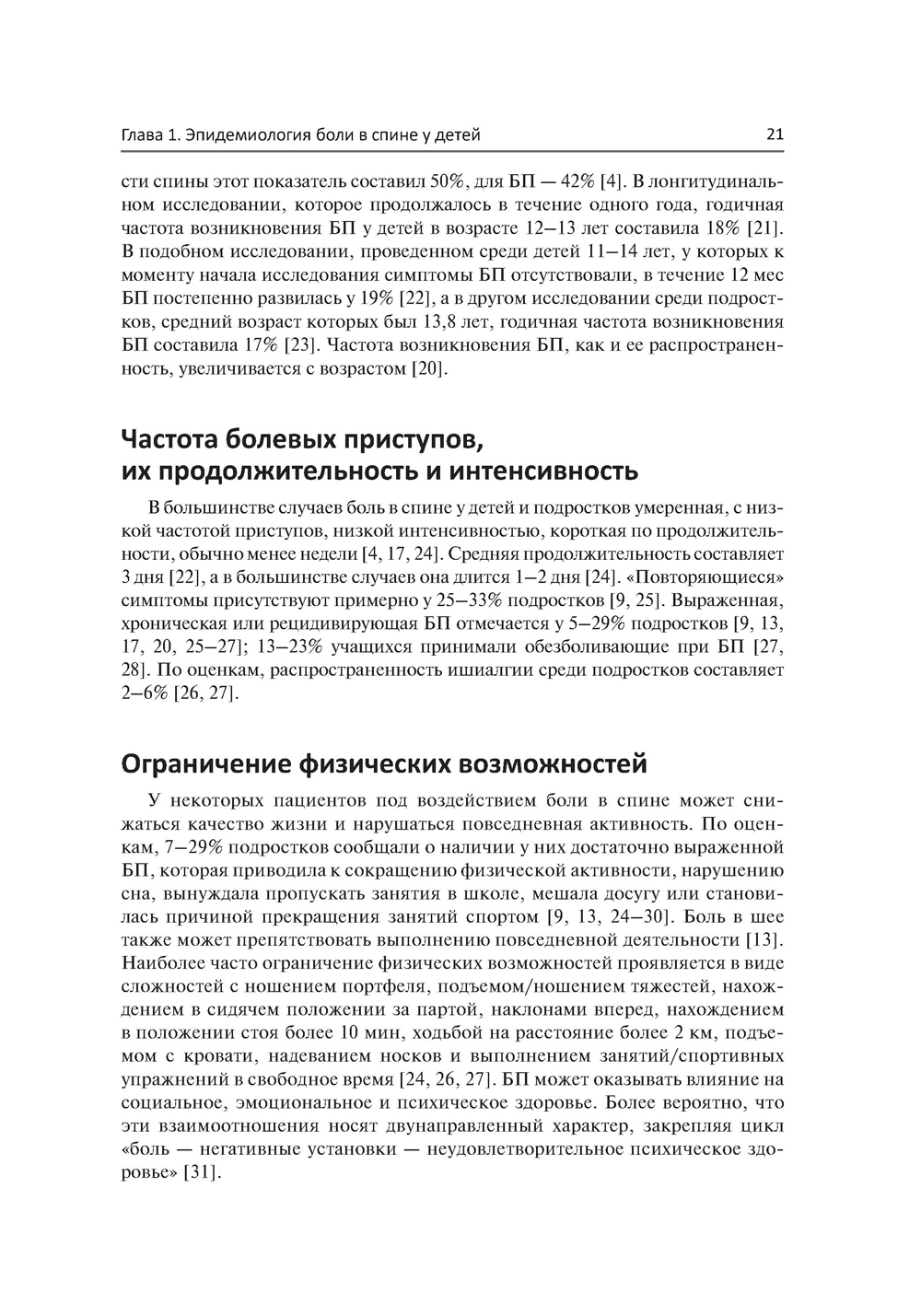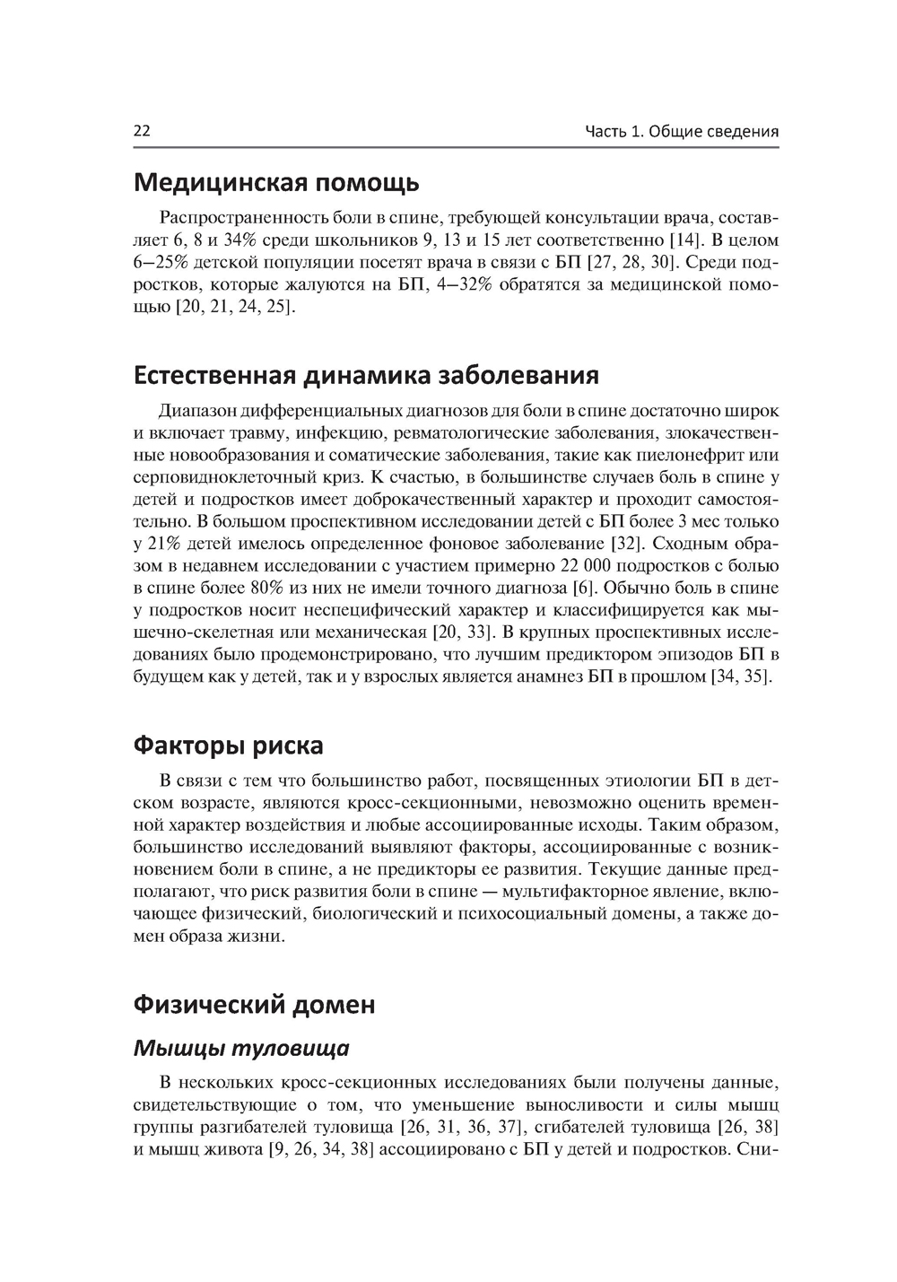 Боль в спине - наиболее распространенное состояние опорно-двигательного аппарата, на которое пациенты жалуются врачам в отделении первичной и неотложной медицинской помощи. При этом лишь немногие врачи первичной помощи получили образование и подготовку по вопросам надлежащего обследования ребенка с болью в спине. Это руководство призвано восполнить пробелы в знаниях врачей и в конечном итоге улучшить лечение и последующий уход за пациентами. Издание состоит из двух основных разделов. Первый раздел содержит семь вводных глав по эпидемиологии, анатомии позвоночника, визуализирующим исследованиям, клиническим аспектам, общим вопросам анамнеза и физикальному обследованию ребенка с болью в спине. Во втором разделе представлен обзор распространенных проблем, связанных с болью в спине, и даны инструкции, как лучше провести обследование педиатрического пациента. Выделены классические результаты анамнеза и обследования, которые могут привести к целенаправленному дифференциальному диагнозу, успешному лечению и направлению пациента к смежным специалистам. Указания на настораживающие признаки в истории болезни и физическом состоянии помогают врачам избежать диагностических ошибок. Завершается раздел главой, которая позволит врачам собрать всю ценную информацию воедино. Руководство предназначено педиатрам, а также неврологам, ортопедам, врачам мануальной терапии и всем тем, кто занимается проблемой боли в спине.| Издательство | ГЭОТАР-Медиа |